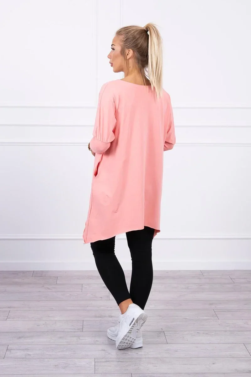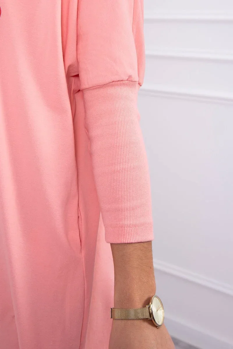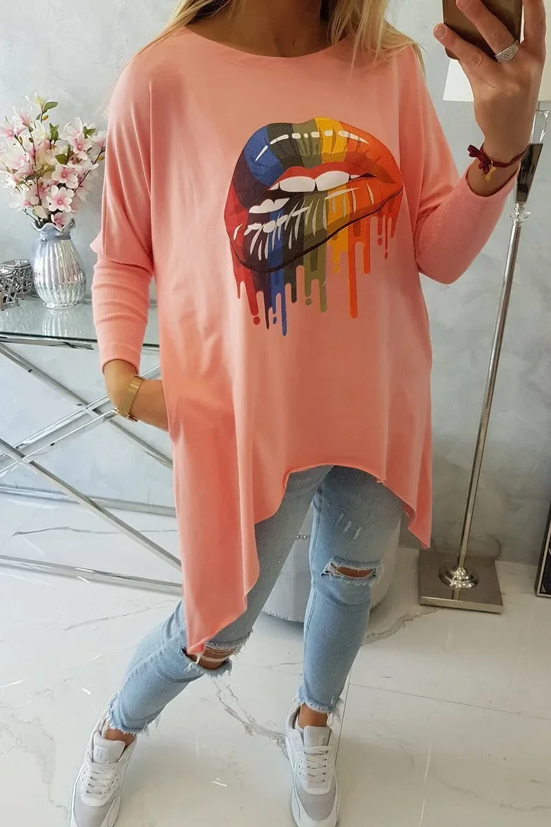 Oversize halenka s model 18747007 potiskem rtů v meruňkové barvě - K-Fashion