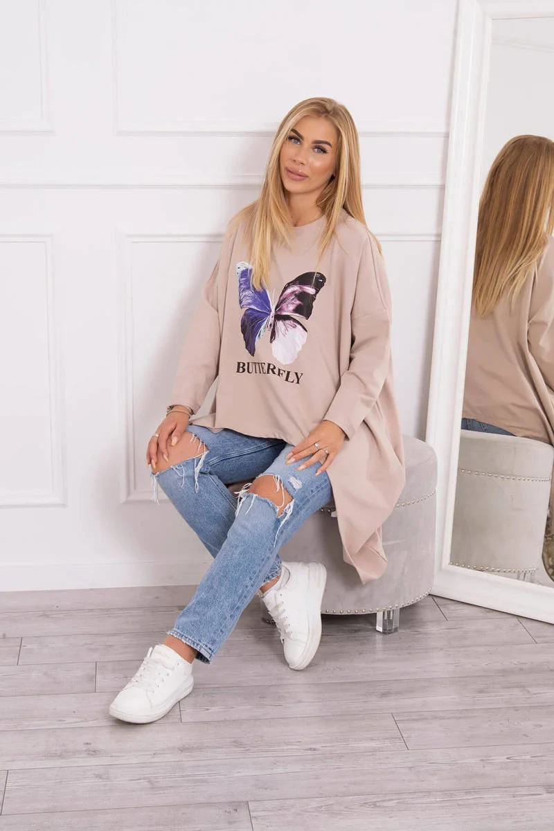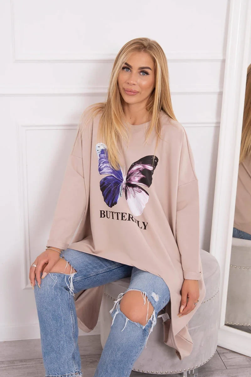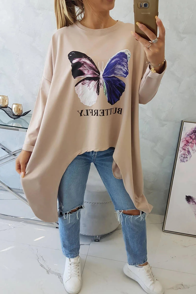 Představujeme vám módní halenku. Halenka s potiskem motýla. Halenka s delšími boky. Halenka je vyrobena z vysoce kvalitního materiálu. Velikost je univerzální a vyhovuje dámám, které nosí velikost M, L nebo XL.