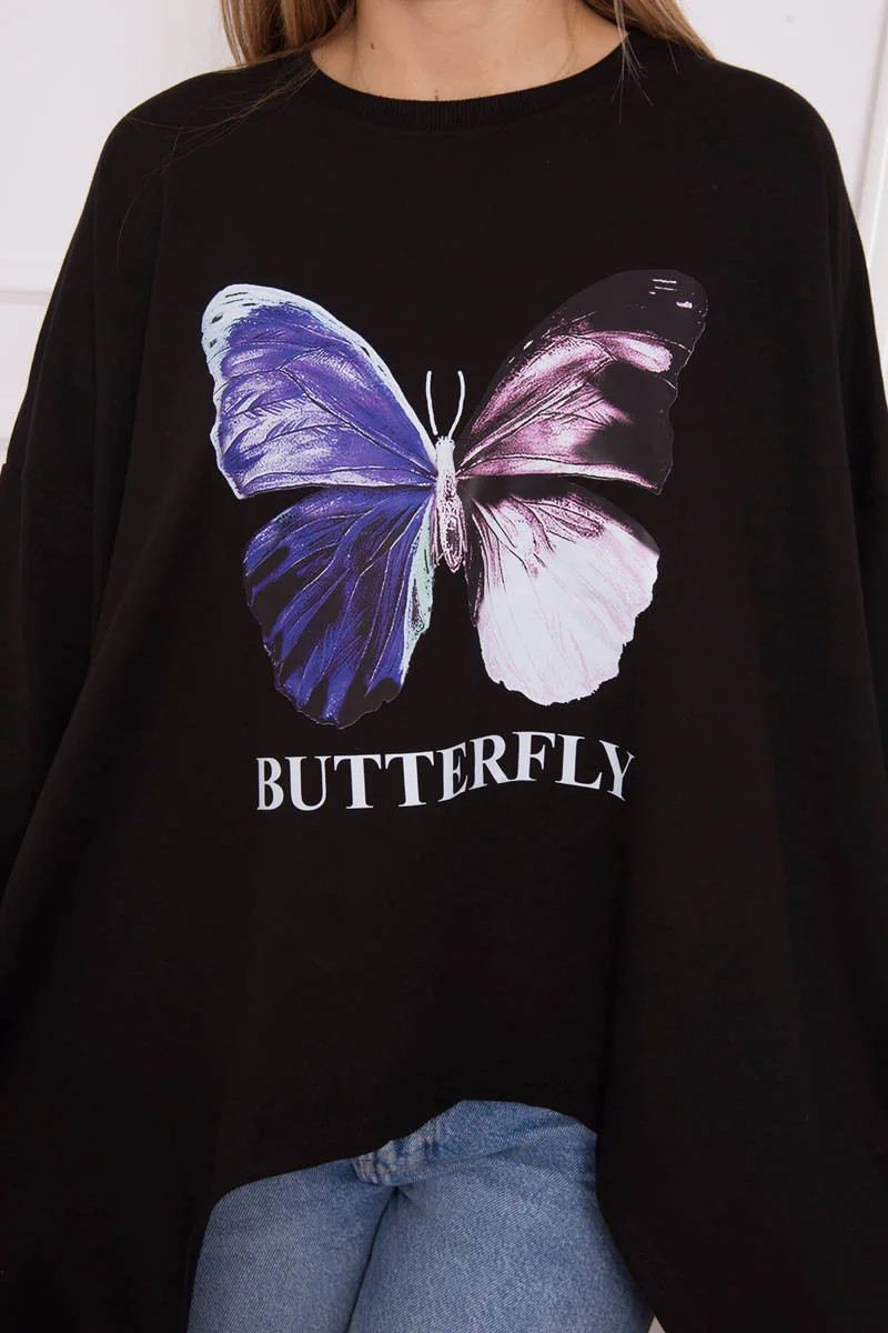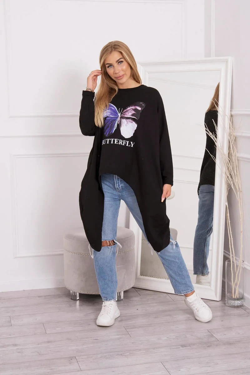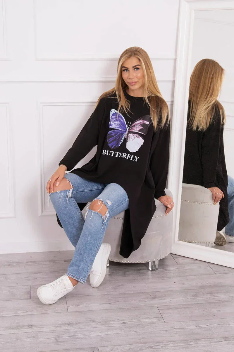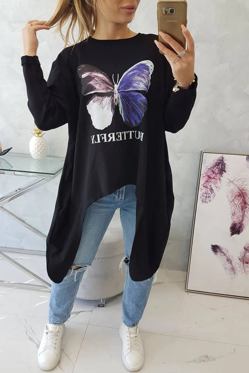 Představujeme vám módní halenku. Halenka s potiskem motýla. Halenka s delšími boky. Halenka je vyrobena z vysoce kvalitního materiálu. Velikost je univerzální a vyhovuje dámám, které nosí velikost M, L nebo XL.