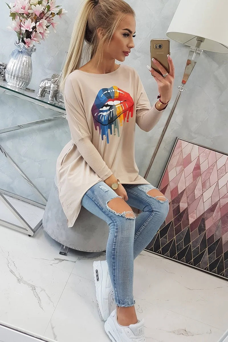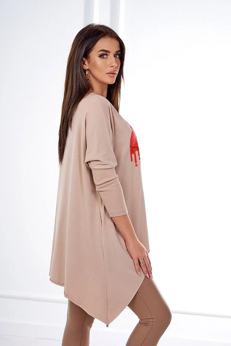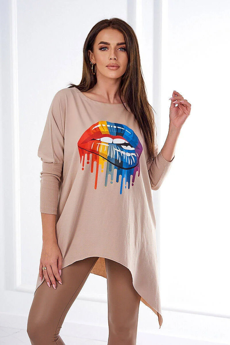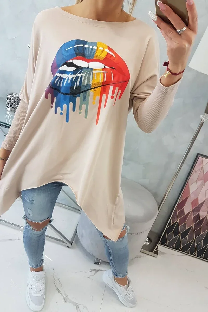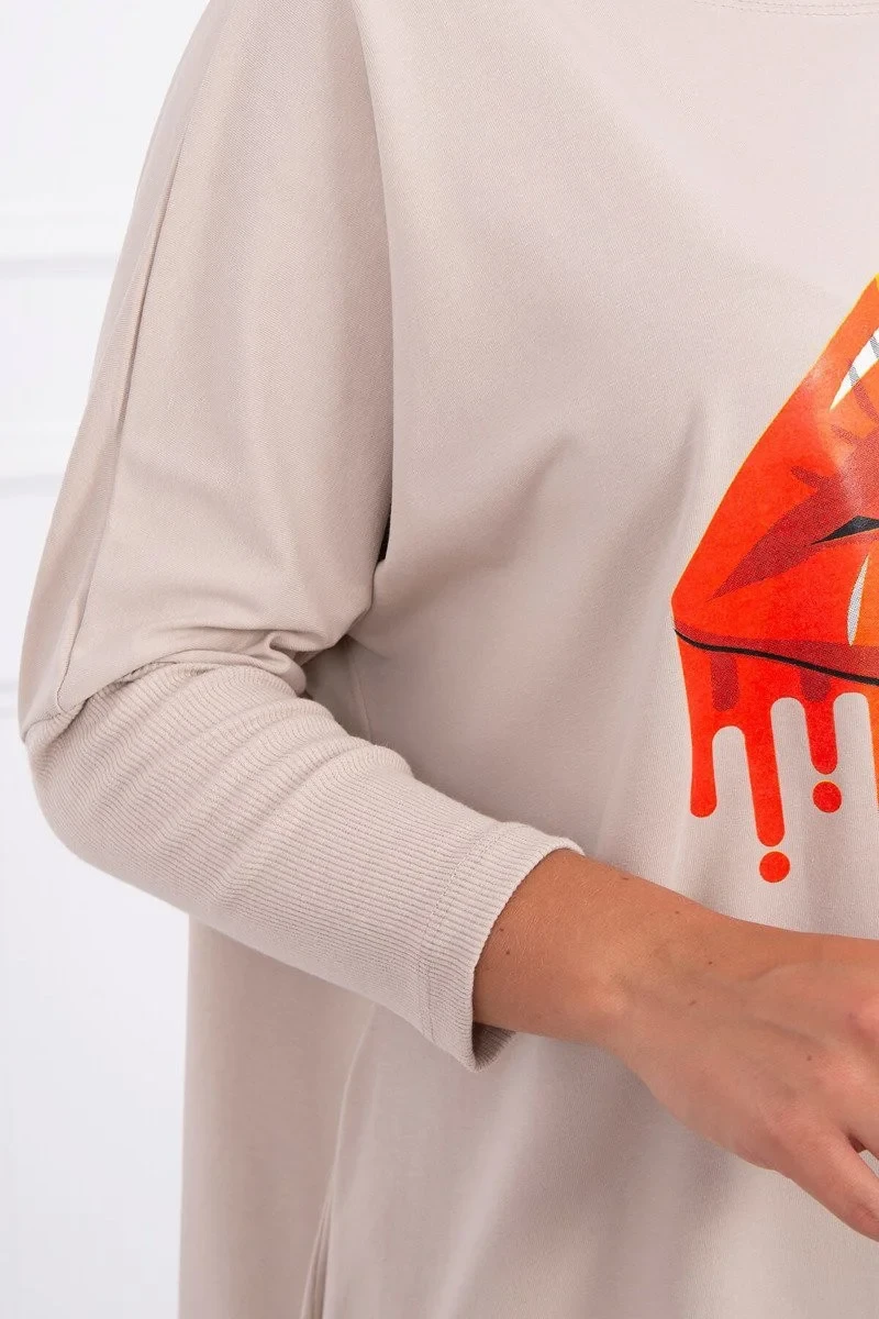 Přidání recenze k Oversize halenka s potiskem model 18743432 rtů béžová - K-Fashion