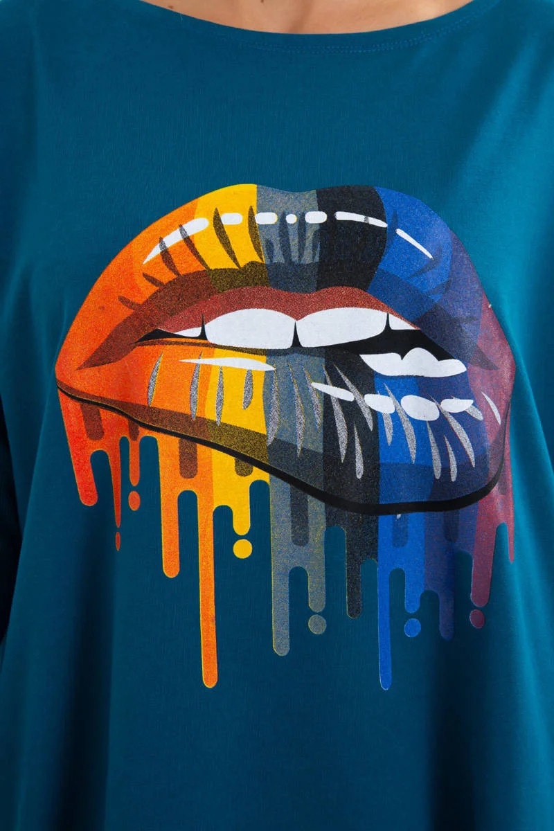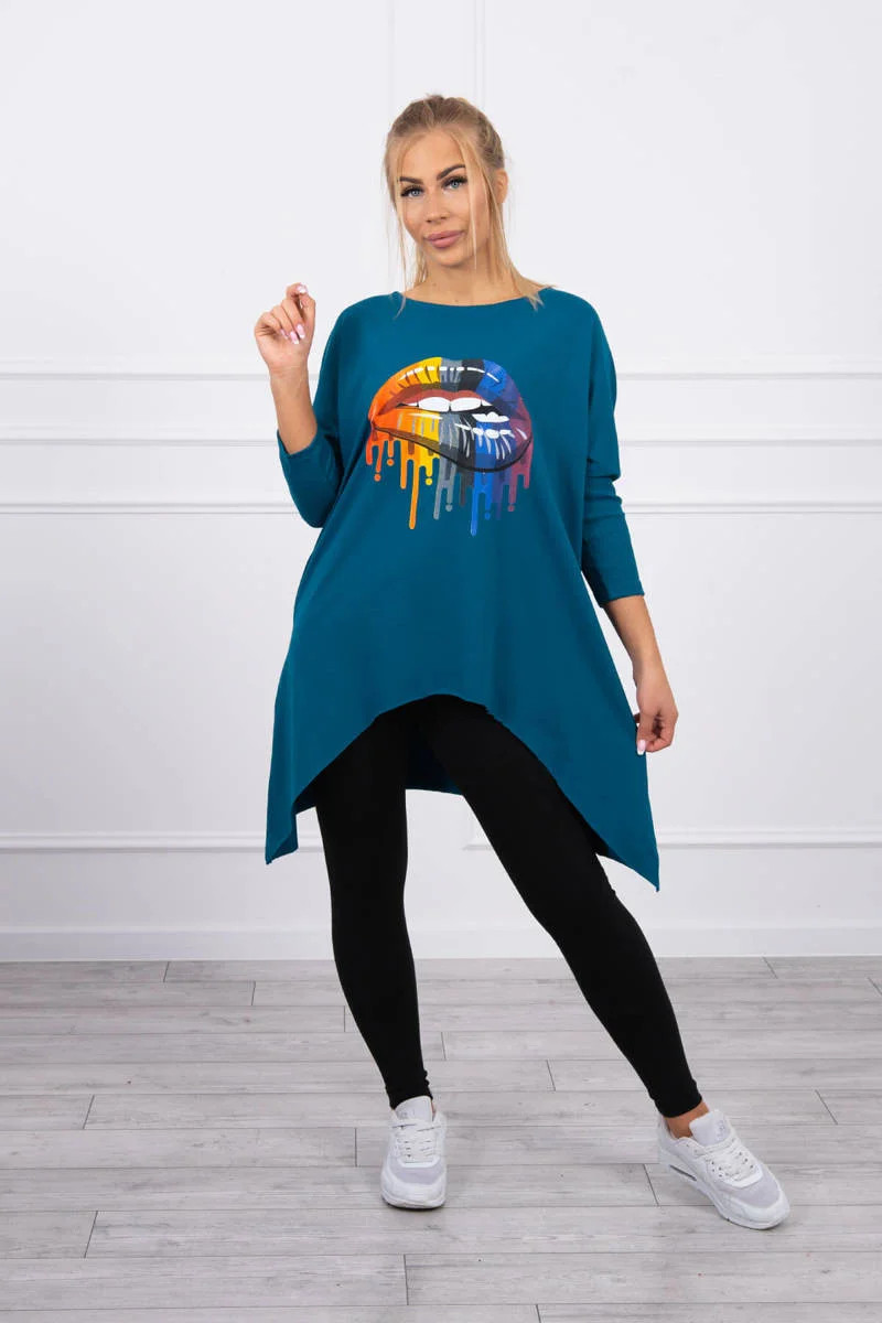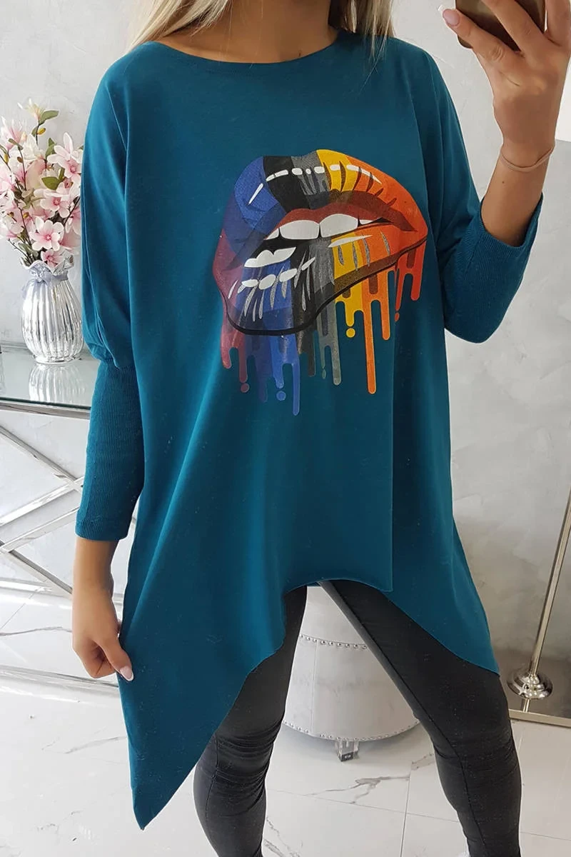 Představujeme vám super oversize halenku. Blůza má na přední straně potisk zobrazující rty v barvách duhy. Halenka s kapsami. Tato halenka se vyznačuje módním designem a precizním zpracováním. Ve vašem šatníku rozhodně nesmí chybět. Halenka je vyrobena z vysoce kvalitního materiálu. Univerzální velikost je vhodná pro dámy, které nosí každodenní oblečení ve velikostech M, L nebo XL
