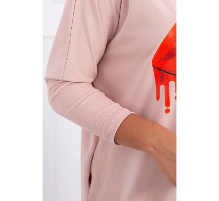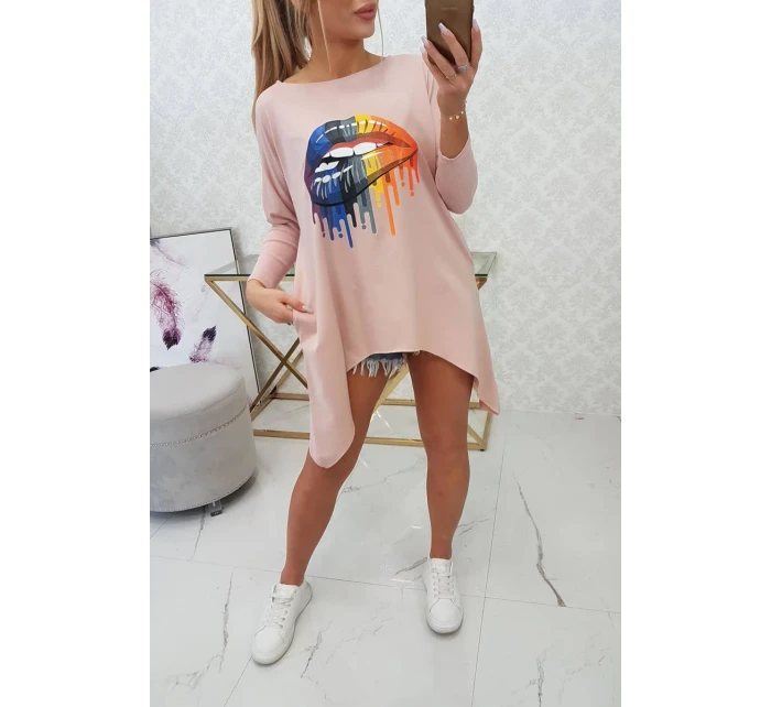 Oversize halenka s potiskem duhových rtů tmavě pudrově růžová
