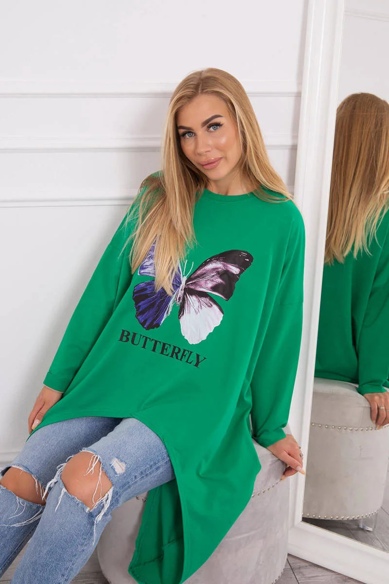 Představujeme vám módní halenku. Halenka s potiskem motýla. Halenka s delšími boky. Halenka je vyrobena z vysoce kvalitního materiálu. Velikost je univerzální a vyhovuje dámám, které nosí velikost M, L nebo XL.