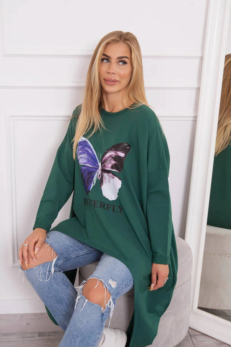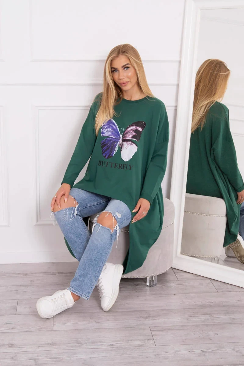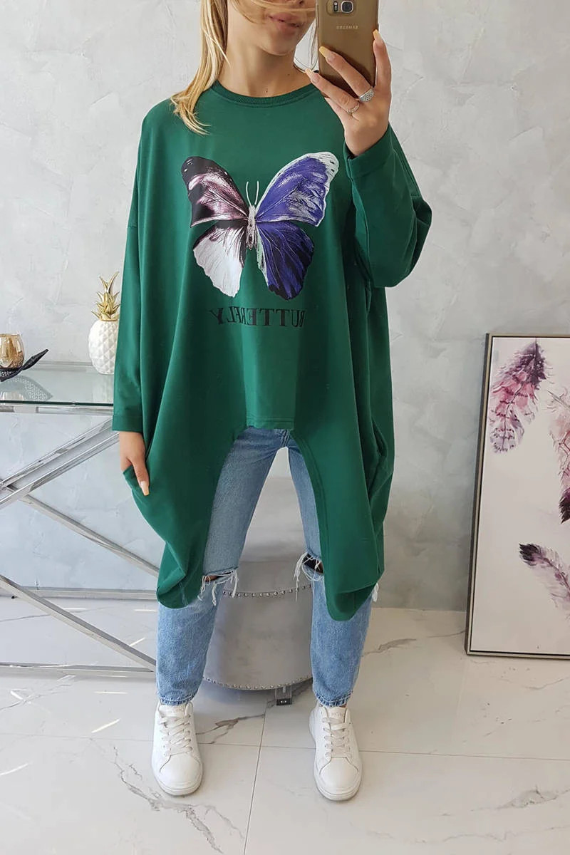 Představujeme vám módní halenku. Halenka s potiskem motýla. Halenka s delšími boky. Halenka je vyrobena z vysoce kvalitního materiálu. Velikost je univerzální a vyhovuje dámám, které nosí velikost M, L nebo XL.