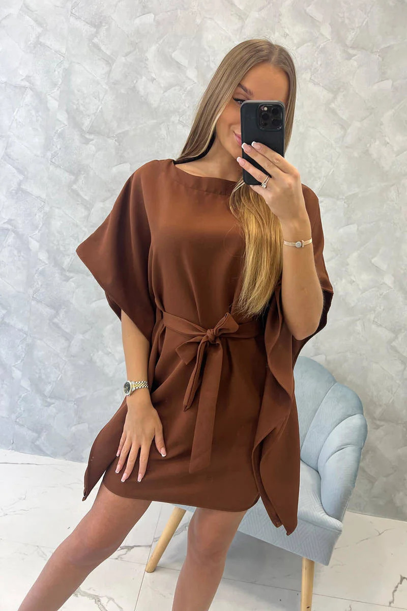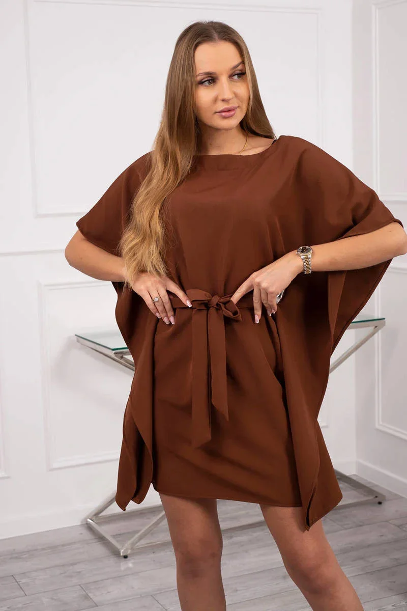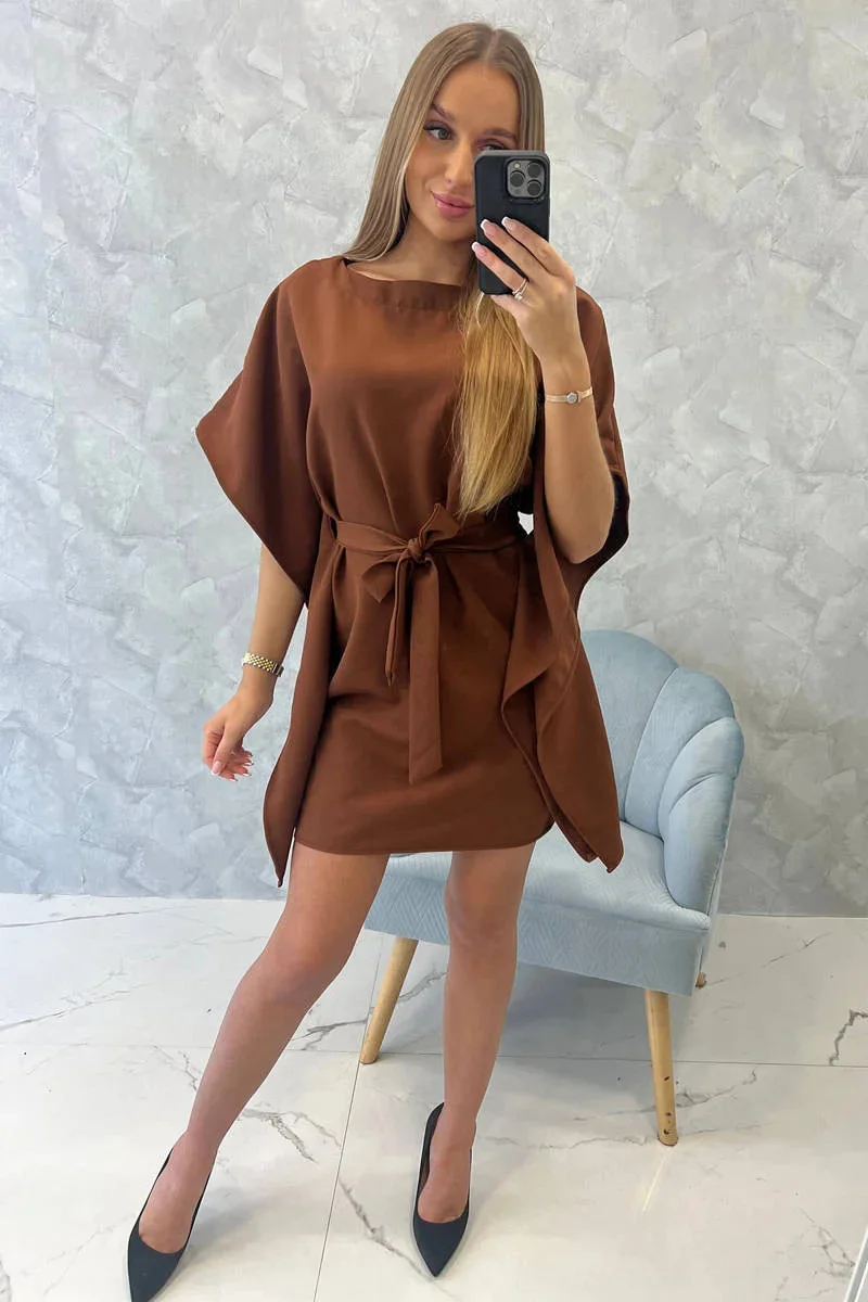 Představujeme vám módní šaty. Šaty mají netopýří rukávy. Šaty zavázané v pase. Ideální každodenní poloha. Šaty jsou vyrobeny z vysoce kvalitního materiálu. Velikost je univerzální a vyhovuje dámám, které nosí velikost S, M nebo L.
