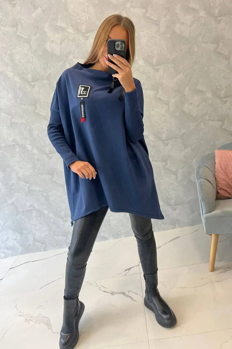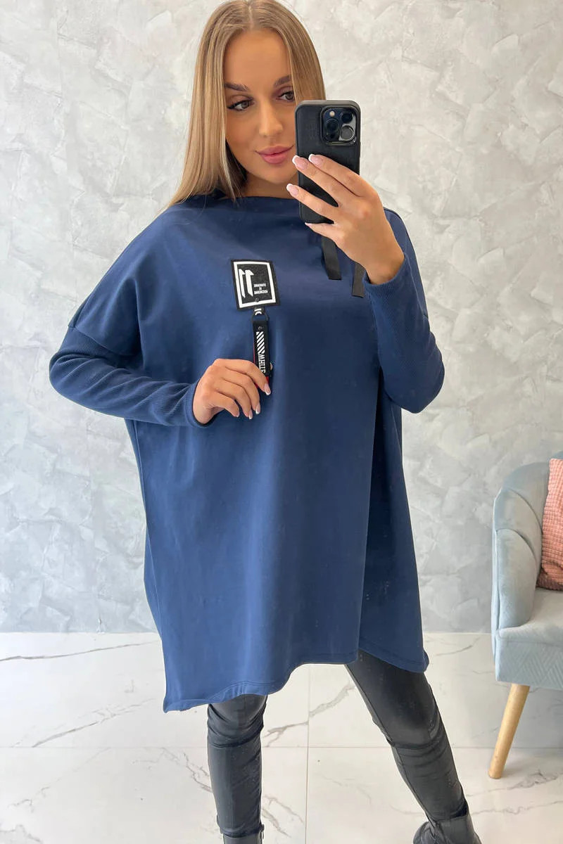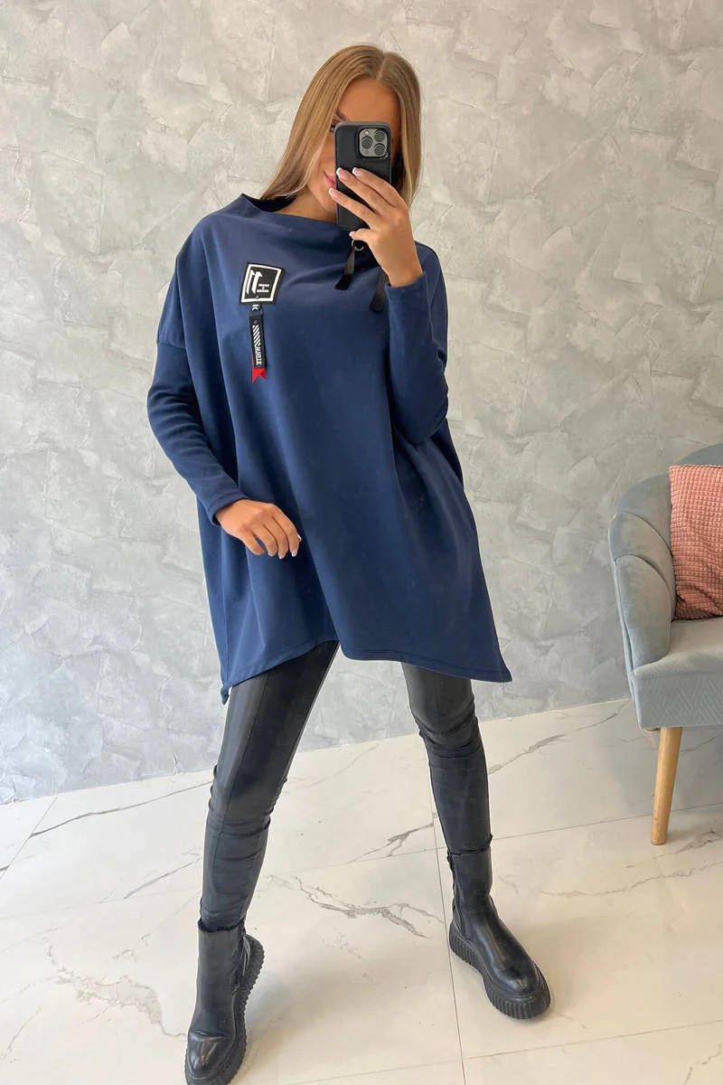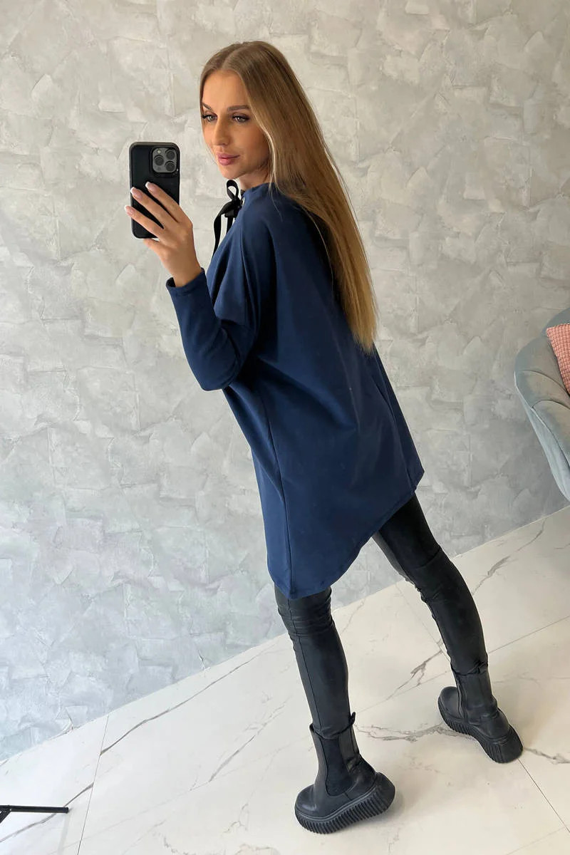 Představujeme vám pohodlnou mikinu. Mikina má delší strany. Ozdobná páska na krk. Rukávy z žebrovaného materiálu. Mikina je vyrobena z vysoce kvalitního materiálu. Velikost je univerzální a vyhovuje dámám, které nosí velikost M, L nebo XL.