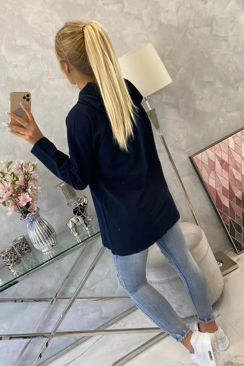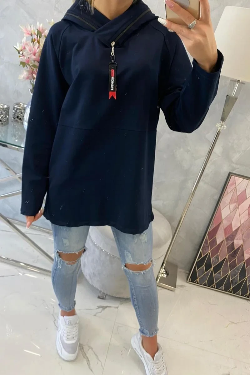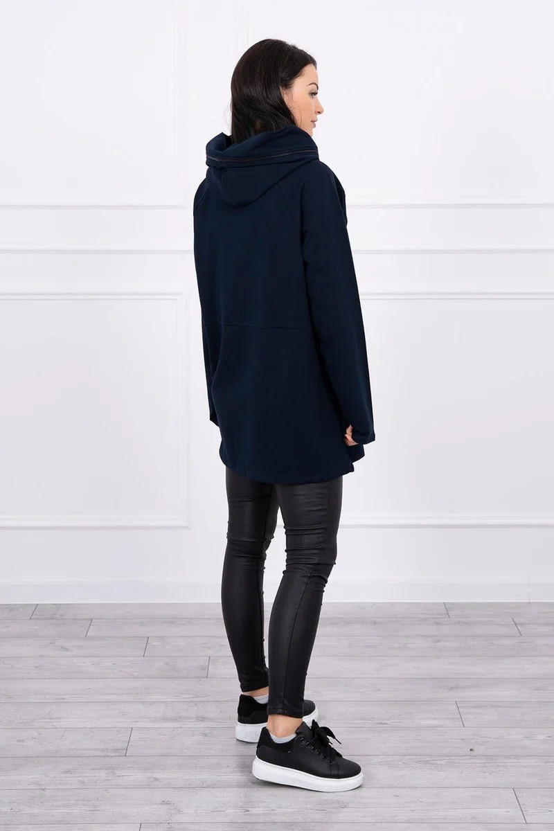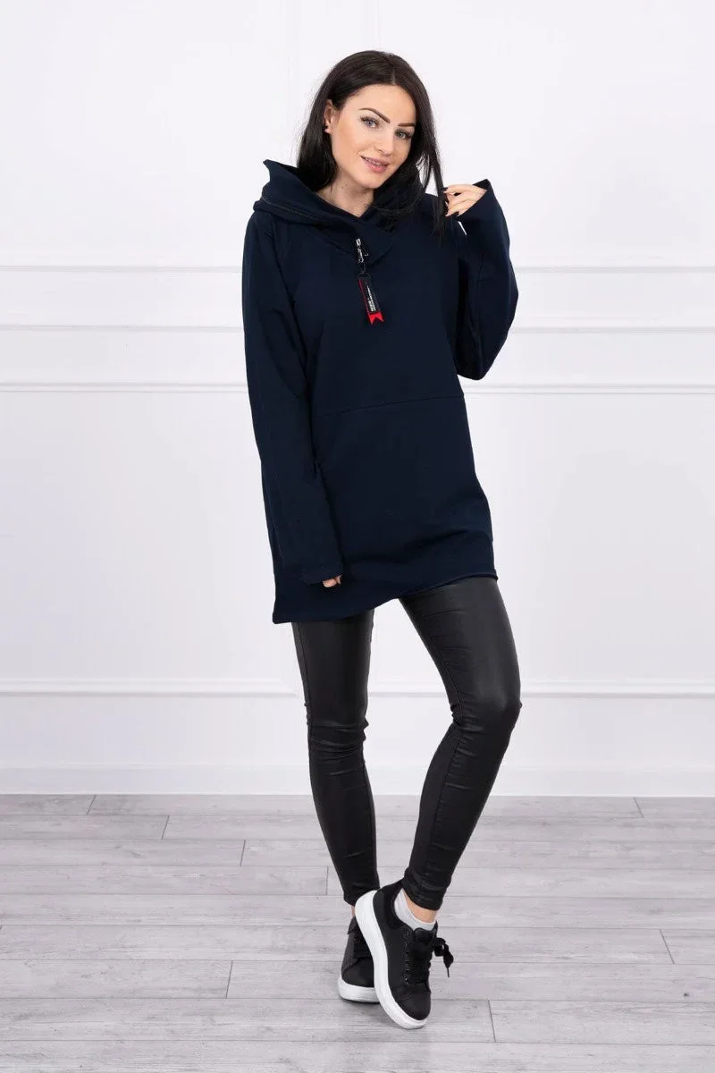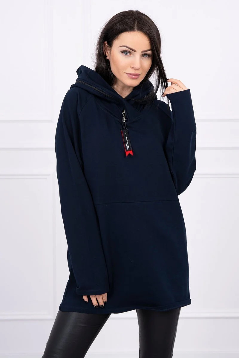 Oversize tmavě modrá tunika na zip s kapucí