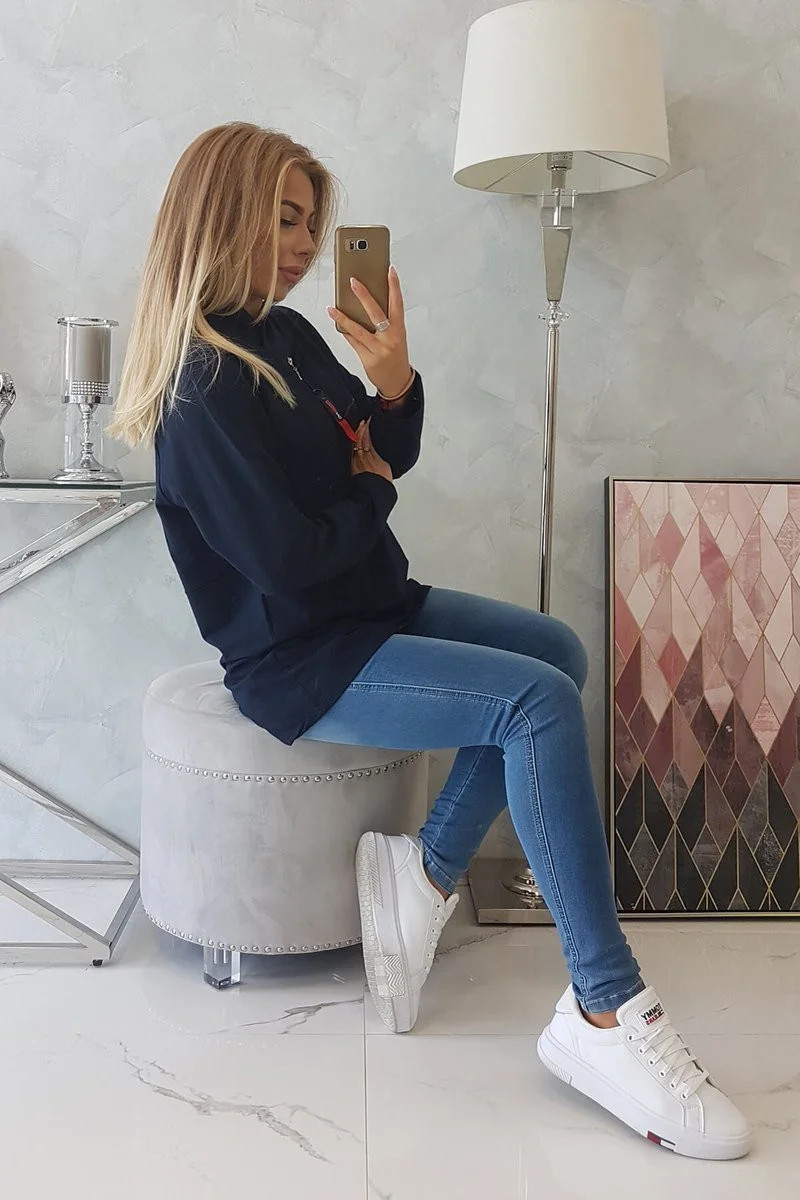 Přidání recenze k Oversize tmavě modrá tunika na zip s kapucí
