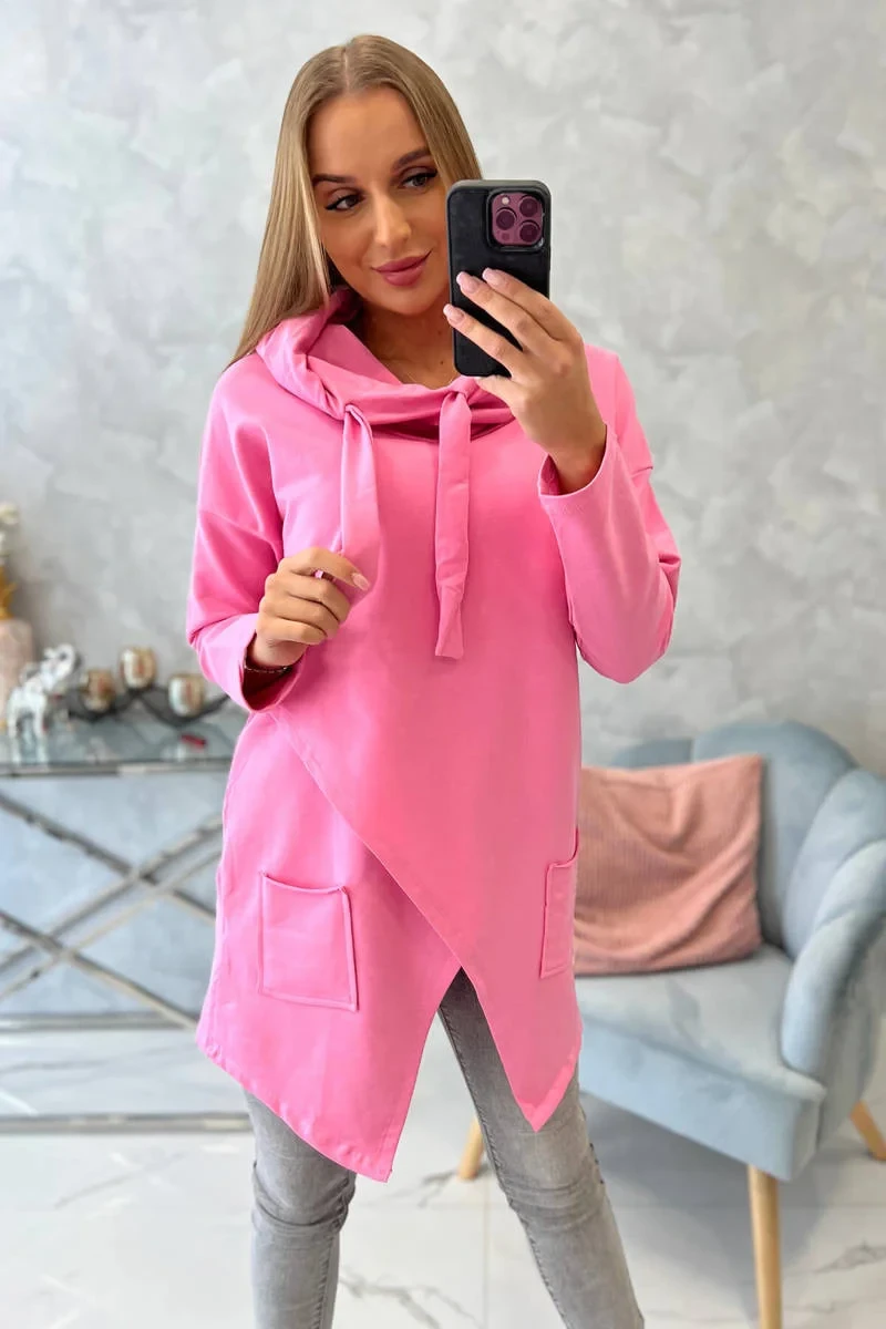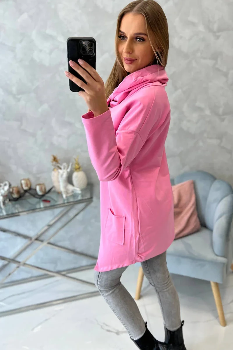 Oversize tunika s obálkou vpředu světle růžová