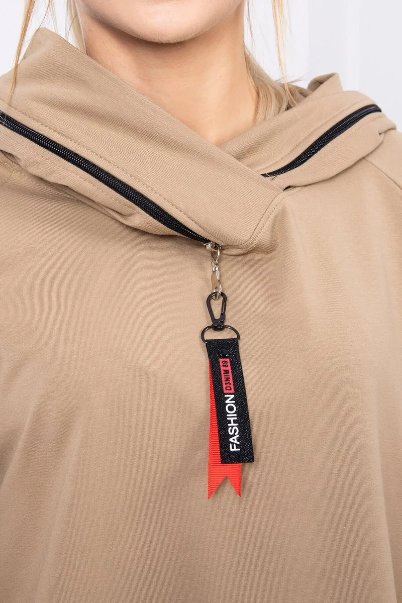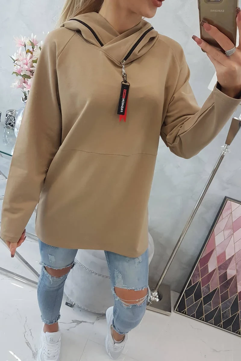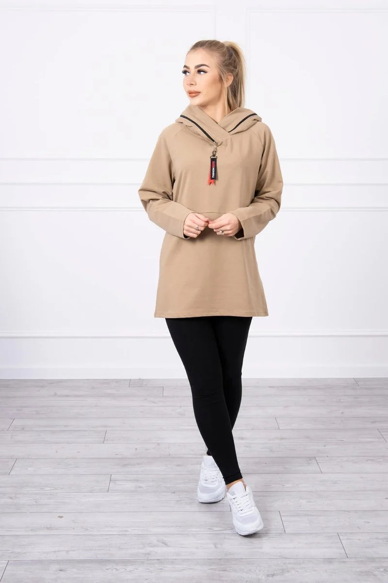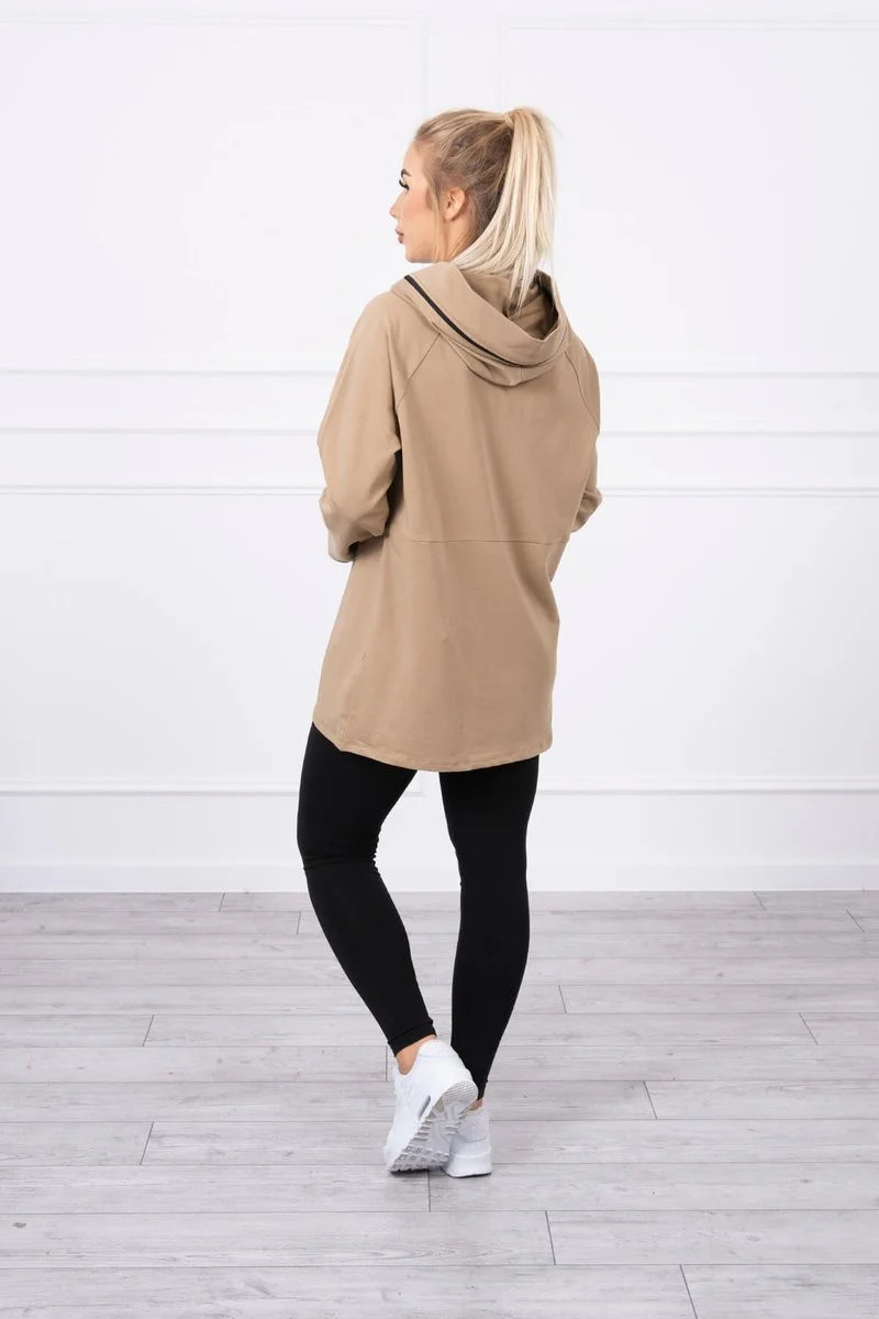 Oversize velbloudí tunika na zip s kapucí