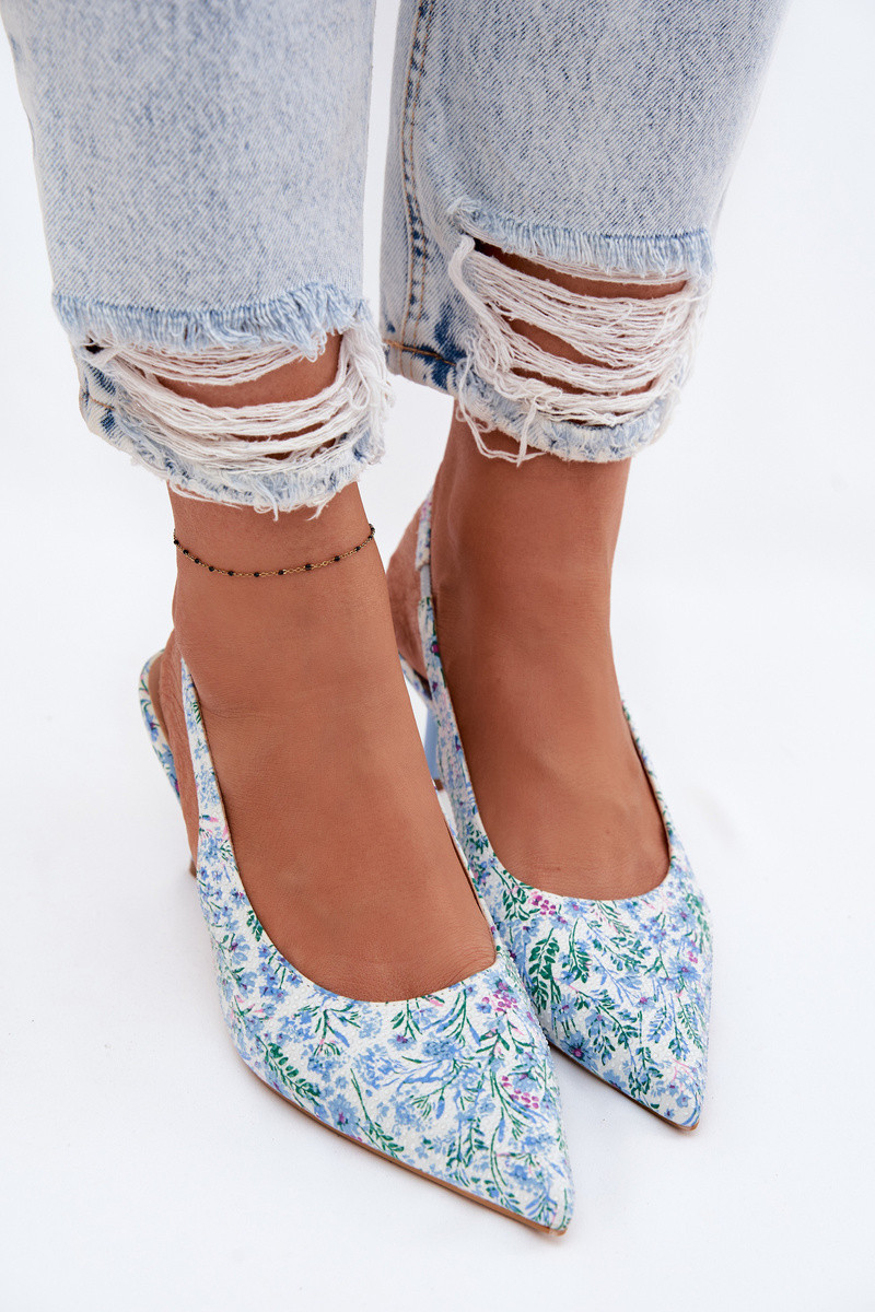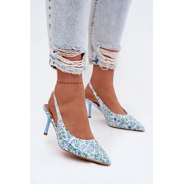 Ozdobené dámské sandály na jehlovém podpatku s květinovým vzorem modré model 22103131 - Boto