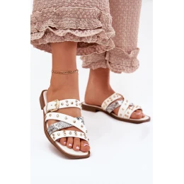 Dámské sandály vyrobené z eko kůže. Usazeny na plochém podpatku. Model se vyznačuje jemnou dekorací, přezkou a pásky, které jim dodávají moderní charakter. Dokonalé pro každodenní stylizace, kombinují komfort s módním vzhledem, ideální na letní procházky nebo neformální výlety. Při výběru velikosti se řiďte tabulkou velikostí.