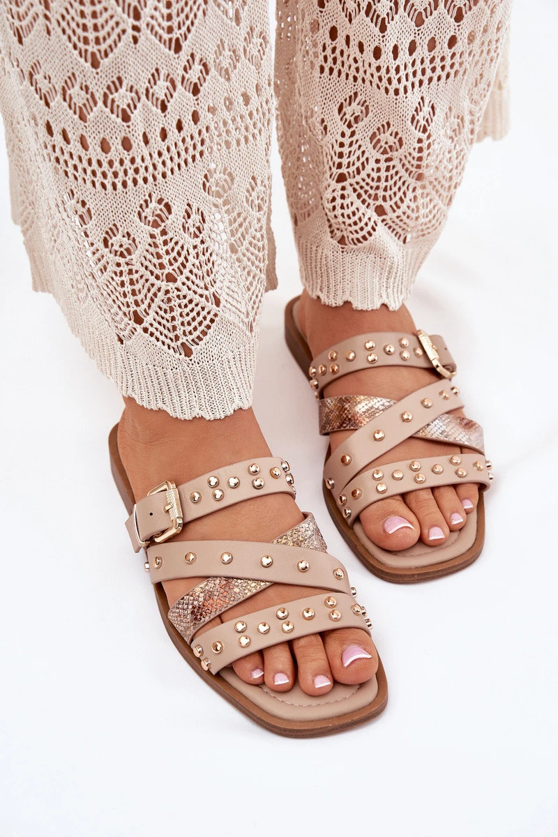 Přidání recenze k Ozdobené dámské sandály na plochém podpatku se pásky a sponou béžové Manitte