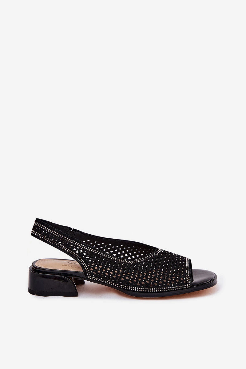 Ozdobené otevřené dámské sandály na podpatku semiš model 22100305 Černé - D&A