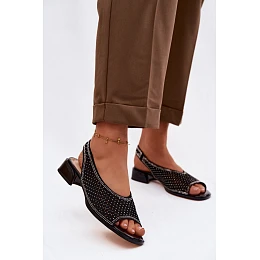 Přidání recenze k Ozdobené otevřené dámské sandály na podpatku semiš model 22100305 Černé - D&A