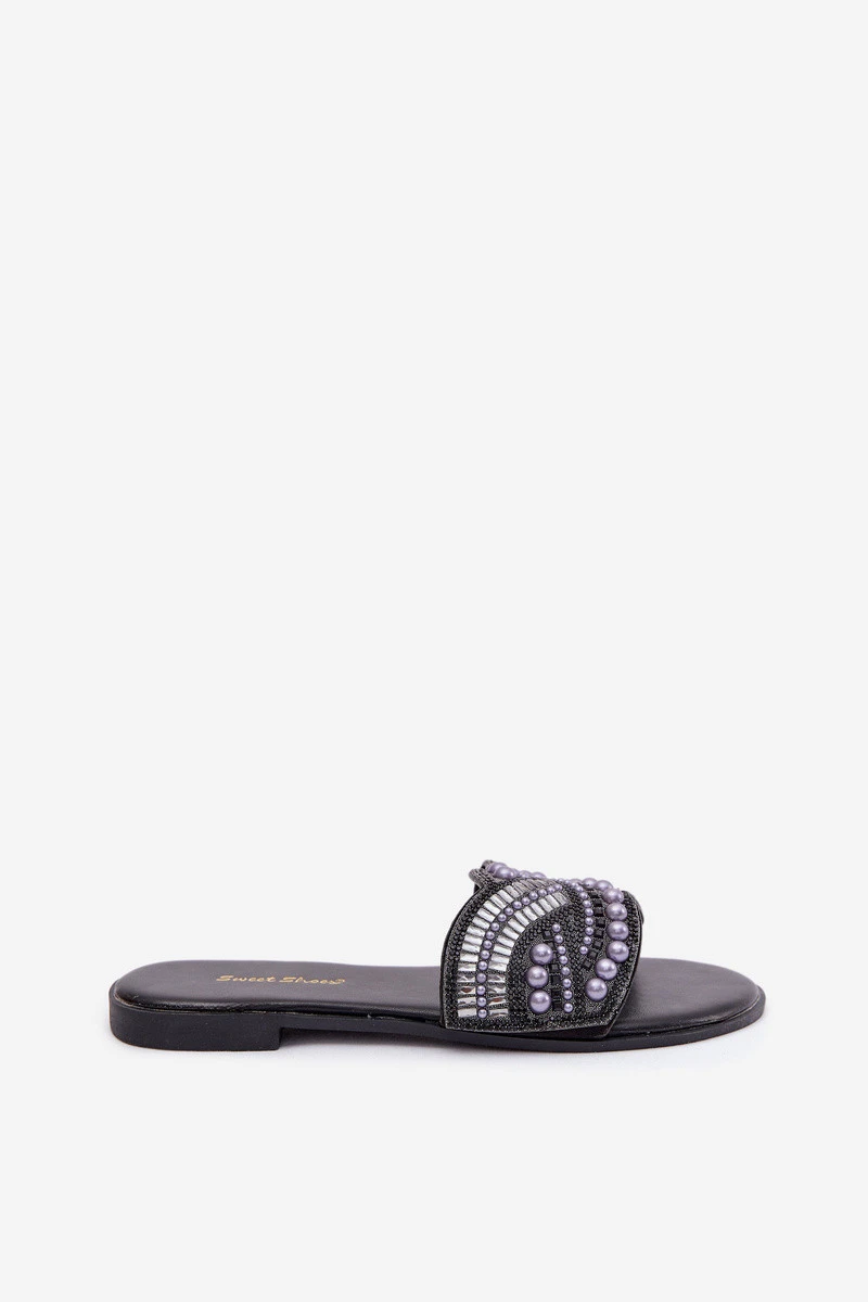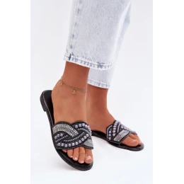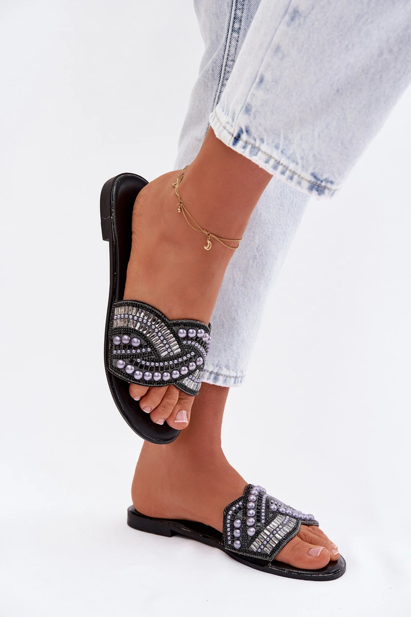 Ozdobené pantofle na nízkém podpatku Černé Dovima