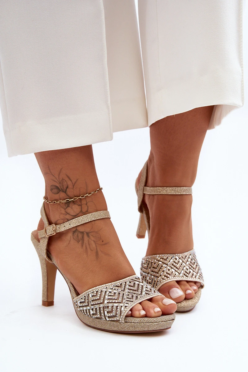Ozdobené sandály na podpatku model 21645618 Zlaté - D&A