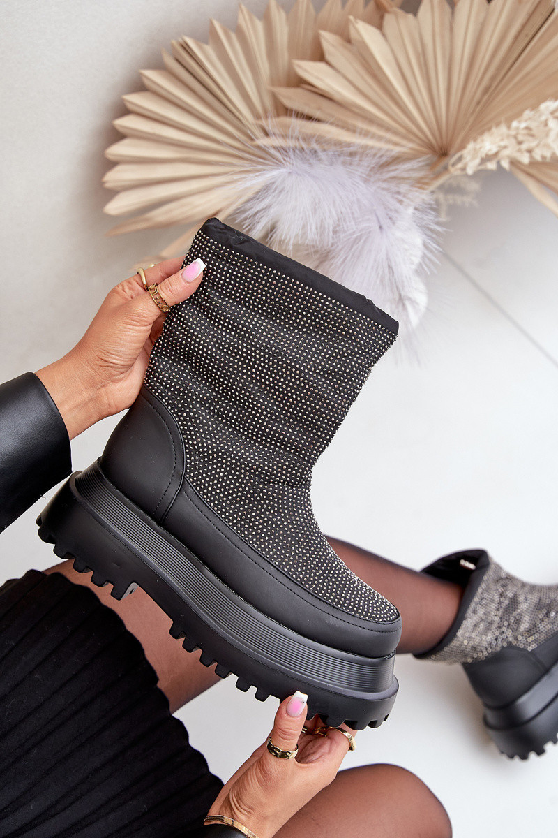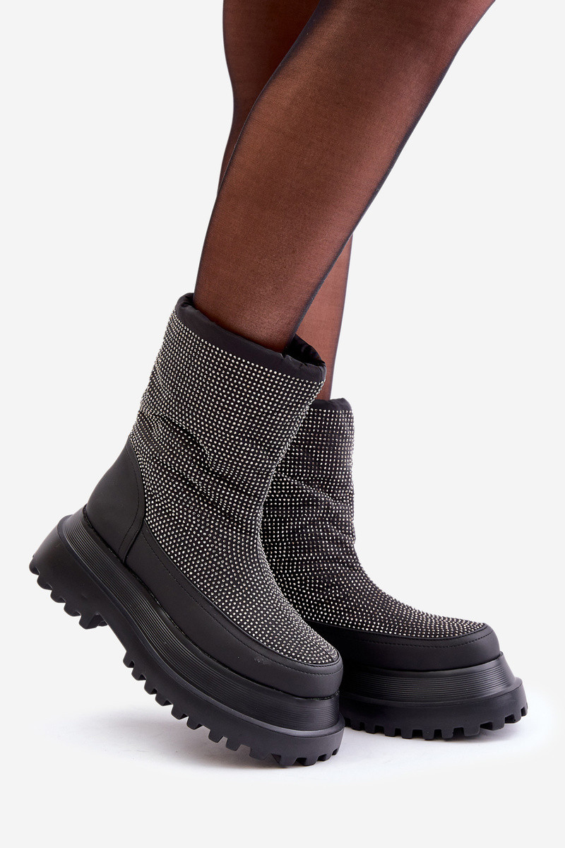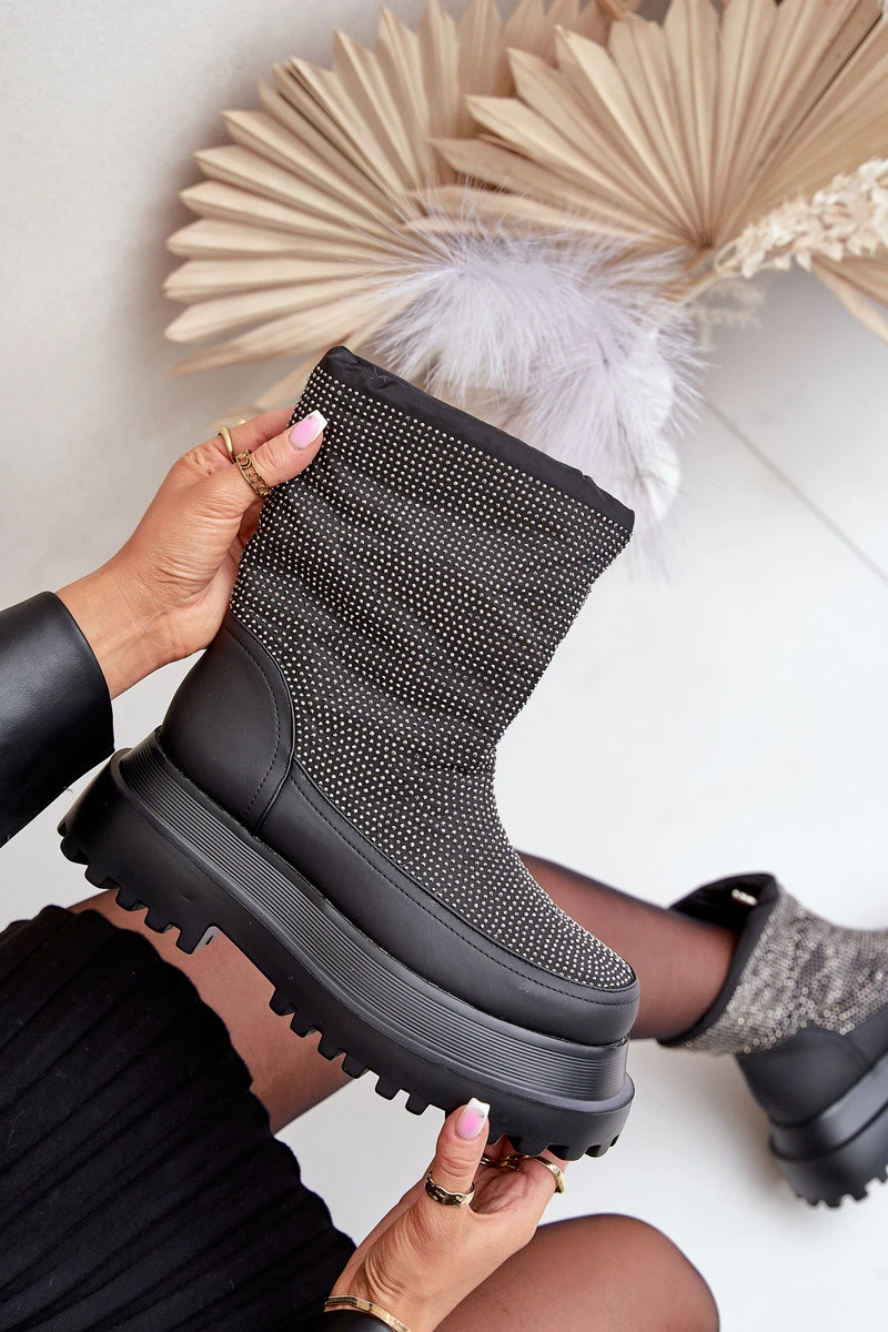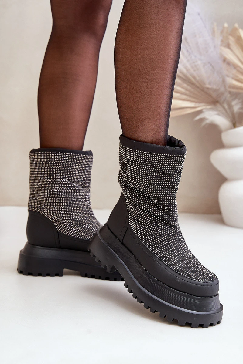 Ozdobené Sněhule Na Platformě A Plochém Podpatku Černé Avivina