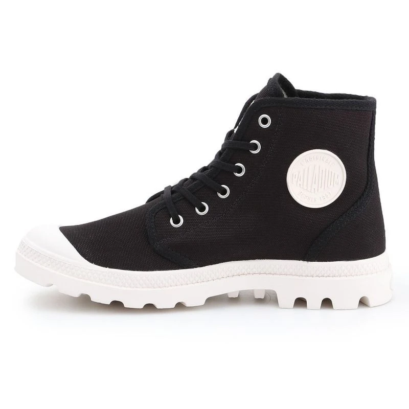Klasický model značky Palladium pro náročné nositele. Vysoký svršek na šněrování je vyroben z robustního textilního materiálu, zatímco podrážka je z kvalitního plastu. Zesílená přední část. Vyjímatelná stélka Paradrop - tvořená silnou PU (polyuretanovou) stélkou, která vydrží dlouhé dny intenzivního nošení a nabízí dlouhotrvající pohodlí. Podrážka má dobrou přilnavost díky širokému běhounu.