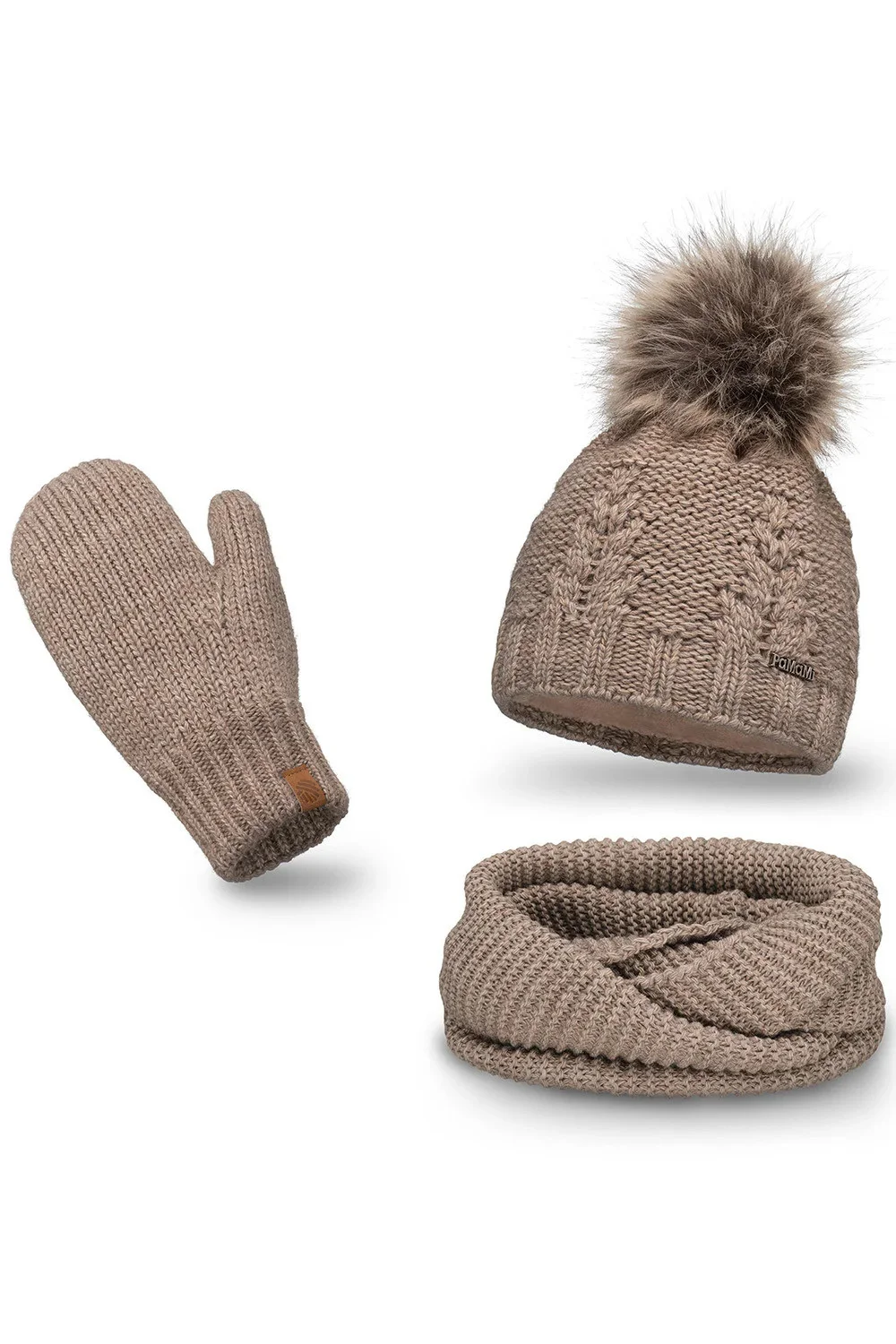 Souprava značky Pamami, model 17549+14603+20680. Výrobek je vyroben z 85 % akrylu, 15 % polyamidu. Dámský výrobek.