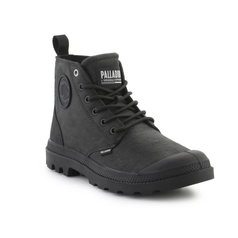 Model Palladium Pampa HI NBK 79495-008-M Black to współczesna wersja kultowych butów Palladium w eleganckim, całkowicie czarnym wydaniu. Cholewka wykonana z miękkiej nubukowej skóry zapewnia trwałość, elegancję i odporność na codzienne użytkowanie. Wysoka konstrukcja buta chroni kostkę, a solidna gumowa podeszwa z głębokim bieżnikiem gwarantuje doskonałą przyczepność i stabilność na różnych nawierzchniach.