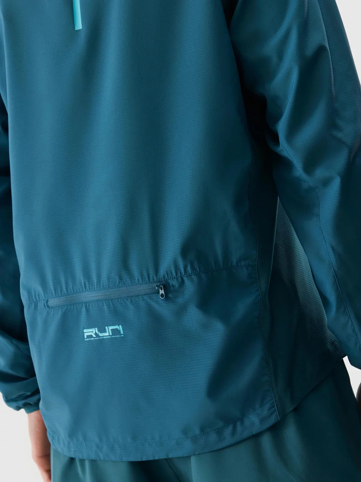 Na bocích jsou 2 kapsy na zip. Na zadní straně je malá kapsa na zip pro uložení nezbytných drobností. Pánská běžecká bunda se zapíná na jednosměrný hlavní zip a je vybavená vnitřní větruodolnou légou, která omezuje pronikání chladu do bundy. Obvod spodní části lze upravit pomocí tunelové šňůrky se stopery.