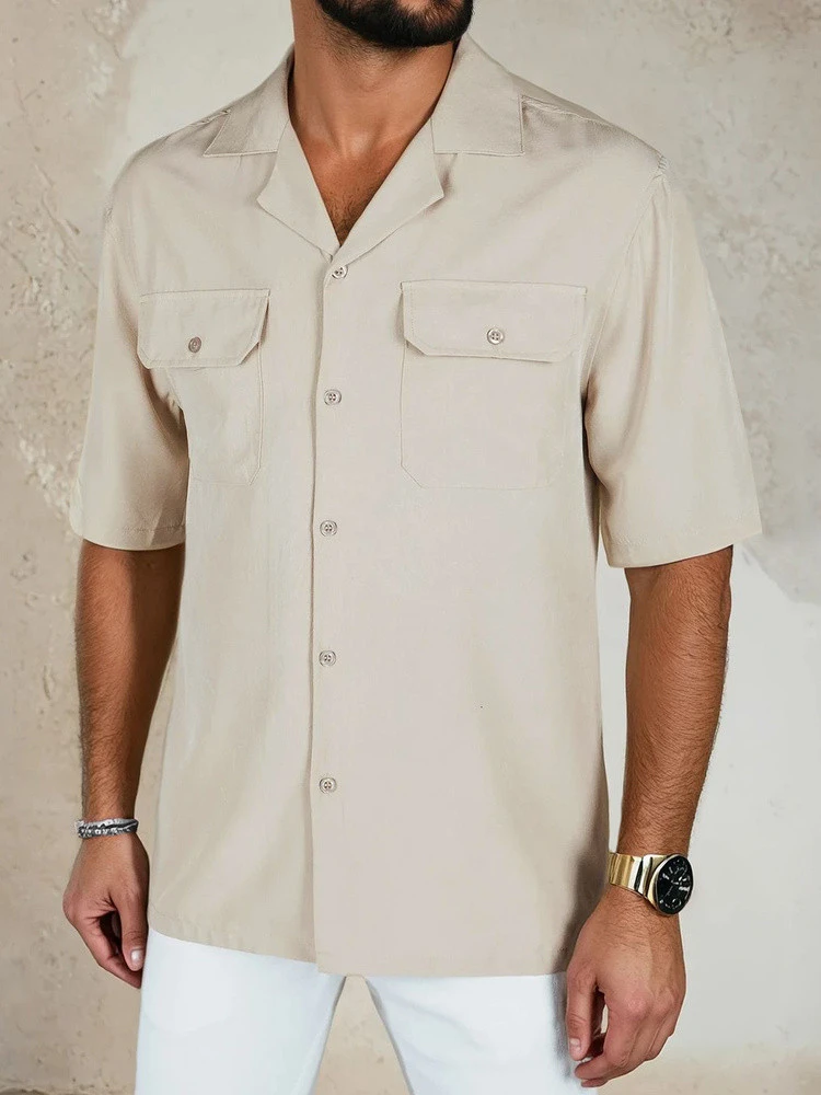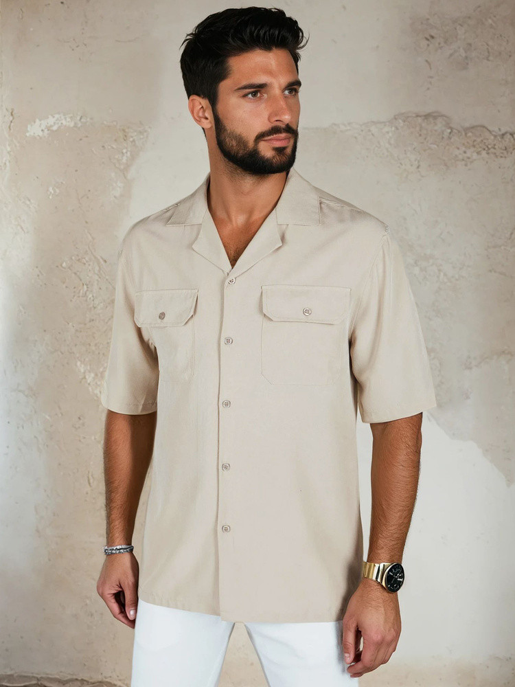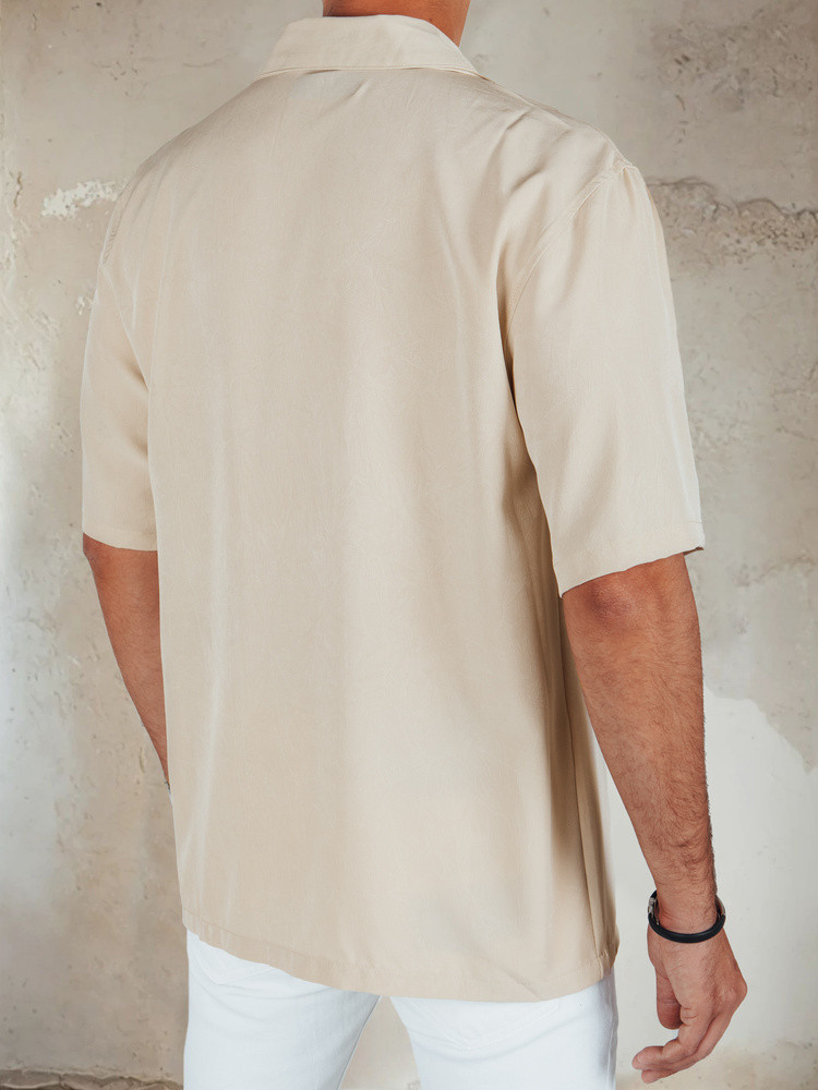 Koszula męska z oddychającej wiskozy, zapinana na guziki i wykończona klasycznym kołnierzem, to połączenie wygody i stylu. Krótki rękaw i dwie kieszenie na piersi tworzą funkcjonalną całość. Idealna do wiosennych outfitów – zarówno codziennych, jak i bardziej dopracowanych.
