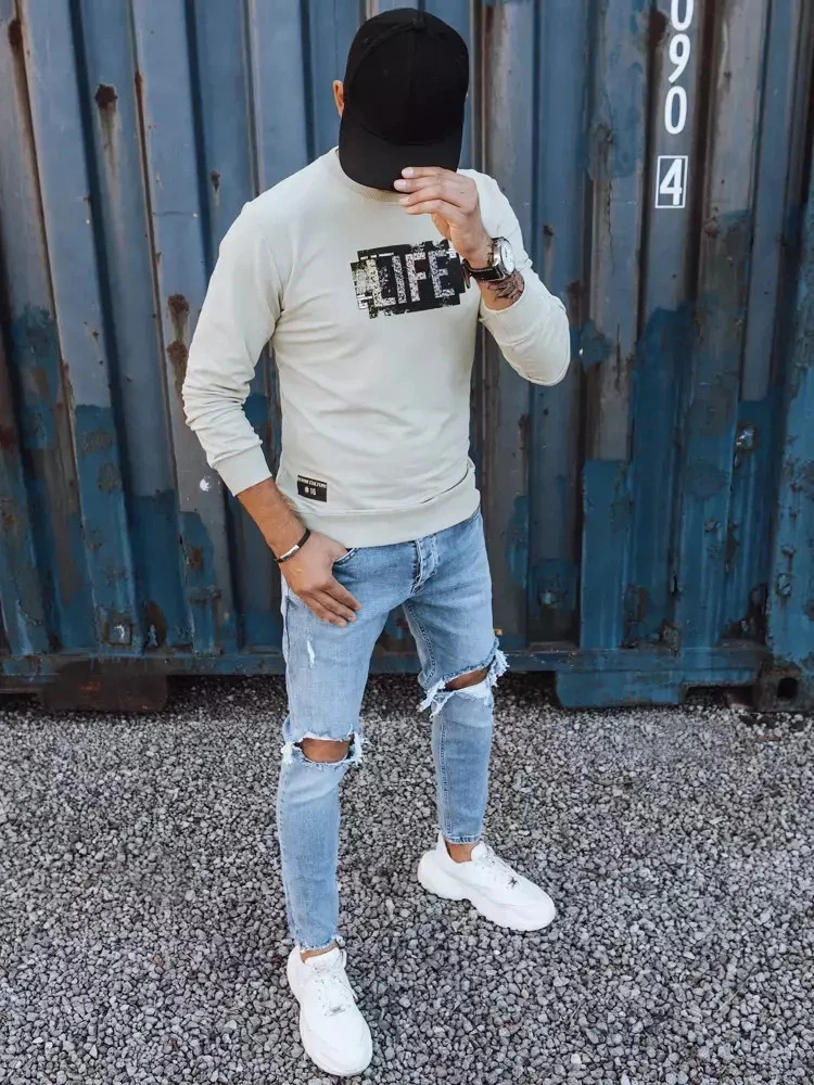 Pánská béžová mikina s potiskem FashionStreet BX5361