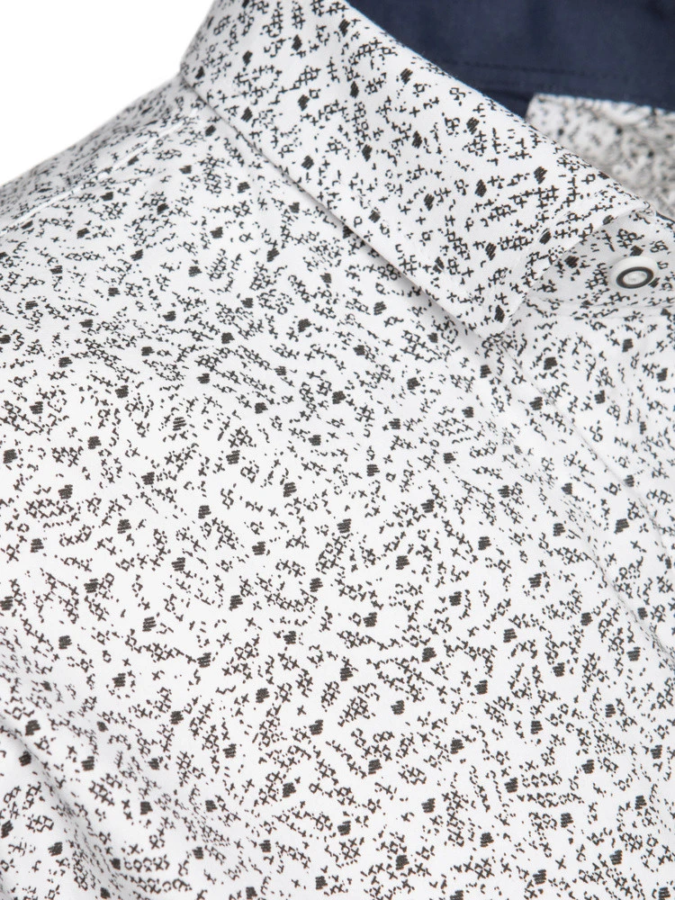 Tato pánská košile s krátkým rukávem a decentním vzorem je určena pro ty, kteří ocení klasiku s moderním nádechem. Úzký střih zvýrazňuje siluetu, zatímco klasický límec dodává eleganci. Košile s knoflíky je ideální jak k ležérním, tak formálnějším outfitům. Vzorovaná tkanina je ideální pro teplejší dny a v létě poskytuje lehkost a pohodlí.