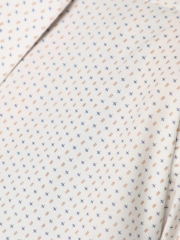 Tato pánská košile slim fit střihu je vyrobena z vysoce kvalitní bavlny s přídavkem elastanu. Jemný geometrický vzor jí dodává moderní nádech při zachování elegantního vzhledu. Pečlivě tvarovaná linie zvýrazňuje siluetu a zajišťuje celodenní pohodlí. Model se bude hodit jak pro business, tak pro smart casual styling.