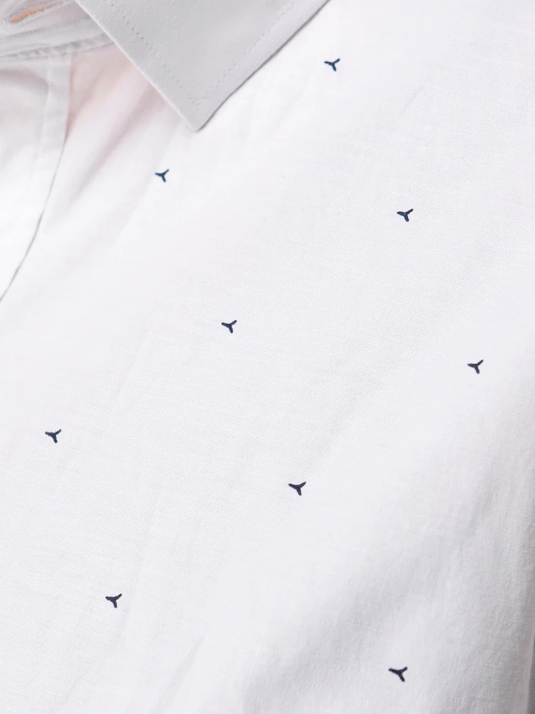 Tato pánská košile slim fit střihu zvýrazňuje siluetu a dodává elegantní, moderní charakter stylingu. Je vyrobena z bavlny s elastanem a poskytuje pohodlí a pružnost. Drobný, minimalistický vzor zpestřuje klasickou formu a vnáší do ní decentní detail. Model je vhodný pro pracovní i méně formální příležitosti.