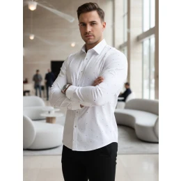 Pánská bílá vzorovaná košile slim fit FashionStreet DX2695