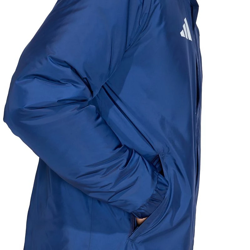 Pánská bunda adidas Entrada 26 Stadium tmavě modrá JZ6669 Pánská bunda adidas je určena pro odpočinek za postranní čárou. Neodepínací model regular fit. Neodepínací kapuce. boční kapsy na zip. manžety na rukávech s žebrovanými manžetami. klopa proti bouřce s druky. syntetická izolace. vnější materiál: 100% recyklovaný polyestervýplň: 100% recyklovaný polyester.