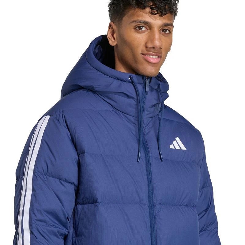 Pánská bunda adidas Ess 3S P D HD J tmavě modrá JX7799 Pánská bunda adidas poskytuje vysokou úroveň izolace proti chladu. Výplň z prachového peří a peří. Tkanina s povrchovou úpravou DWR snižuje absorpci vlhkosti. Volný střih. Zip po celé délce. Boční kapsy se zapínáním na druky. Kapuce nastavitelná pomocí stahovací šňůrky. Zvýšený límec. Elastické manžety a spodní lem. Technologie Climawarm. Technické specifikace:- Hlavní tkanina: 100% recyklovaný polyamid- Podšívka: 100% recyklovaný polyester- Výplň: 80% kachní peří, 20% peří, 600 odrazových bodů.