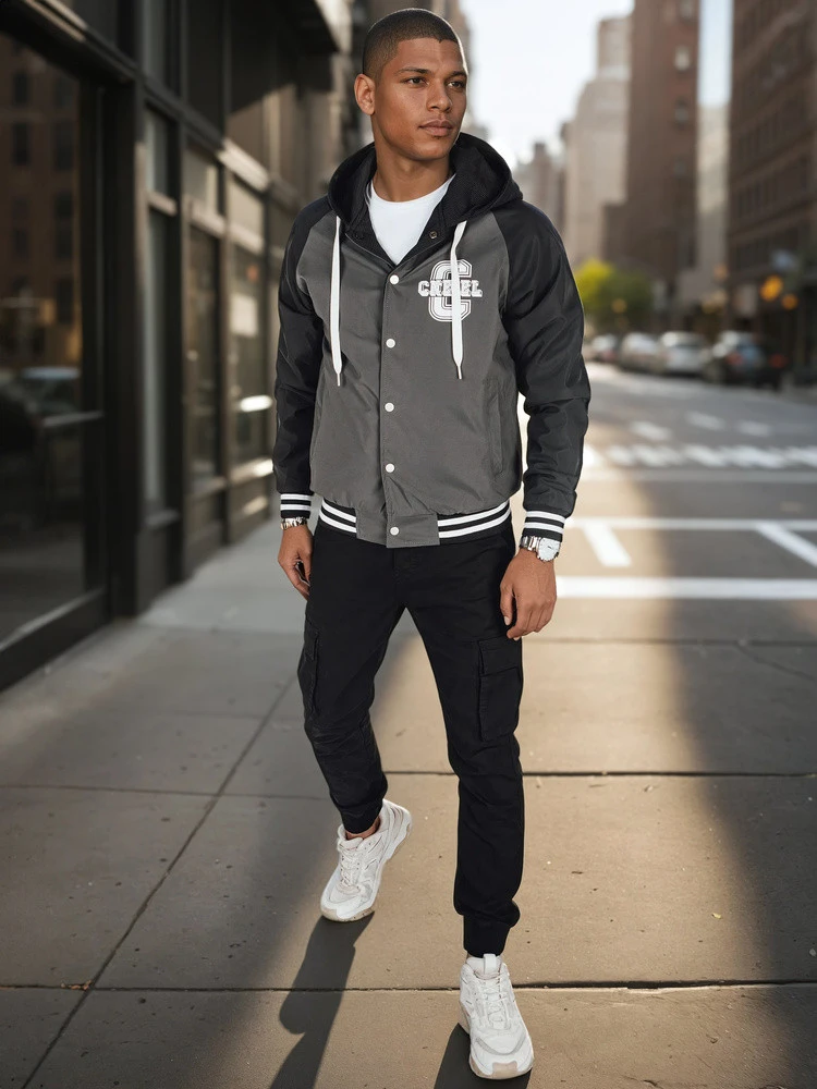 Pánská bunda bomber s kapucí šedá FashionStreet TX5017