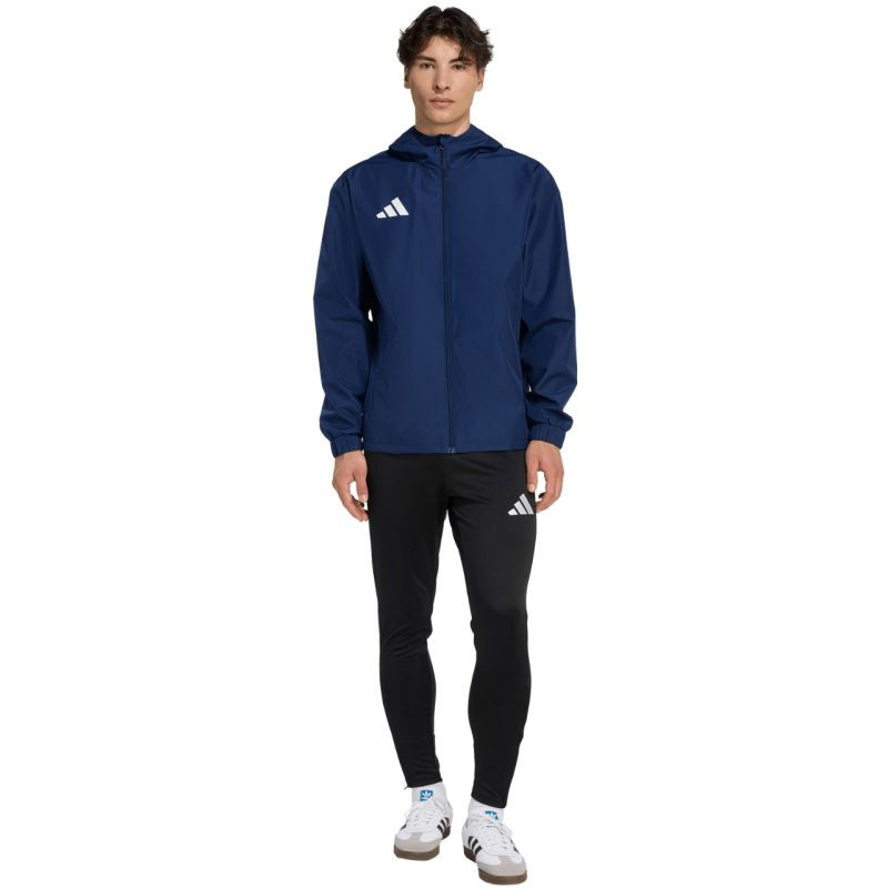 Pánská bunda adidas Entrada 26 All Weather navy blue JZ9102 Pánská bunda adidas je určena pro trénink i odpočinek za postranní čárou.Neodepínací model běžného střihu.Neodnímatelná nenastavitelná kapuce.Boční kapsy se zipy.Manžety na rukávech.Ochrana brady.Technické specifikace:- Plátěná tkanina: 100% recyklovaný polyester- Standardní střih- Zip po celé délce.