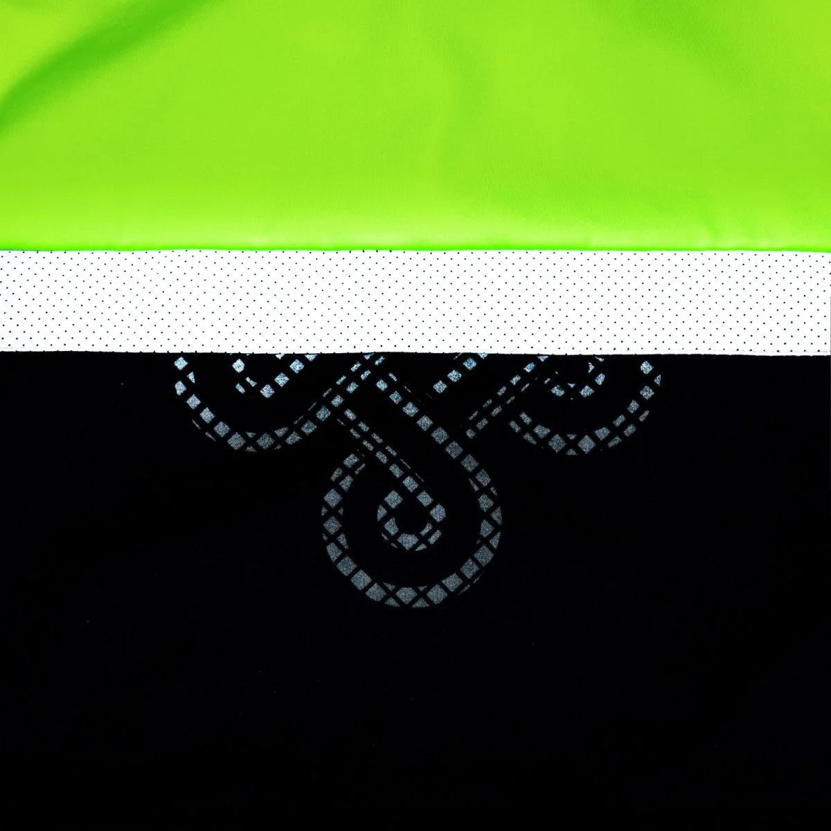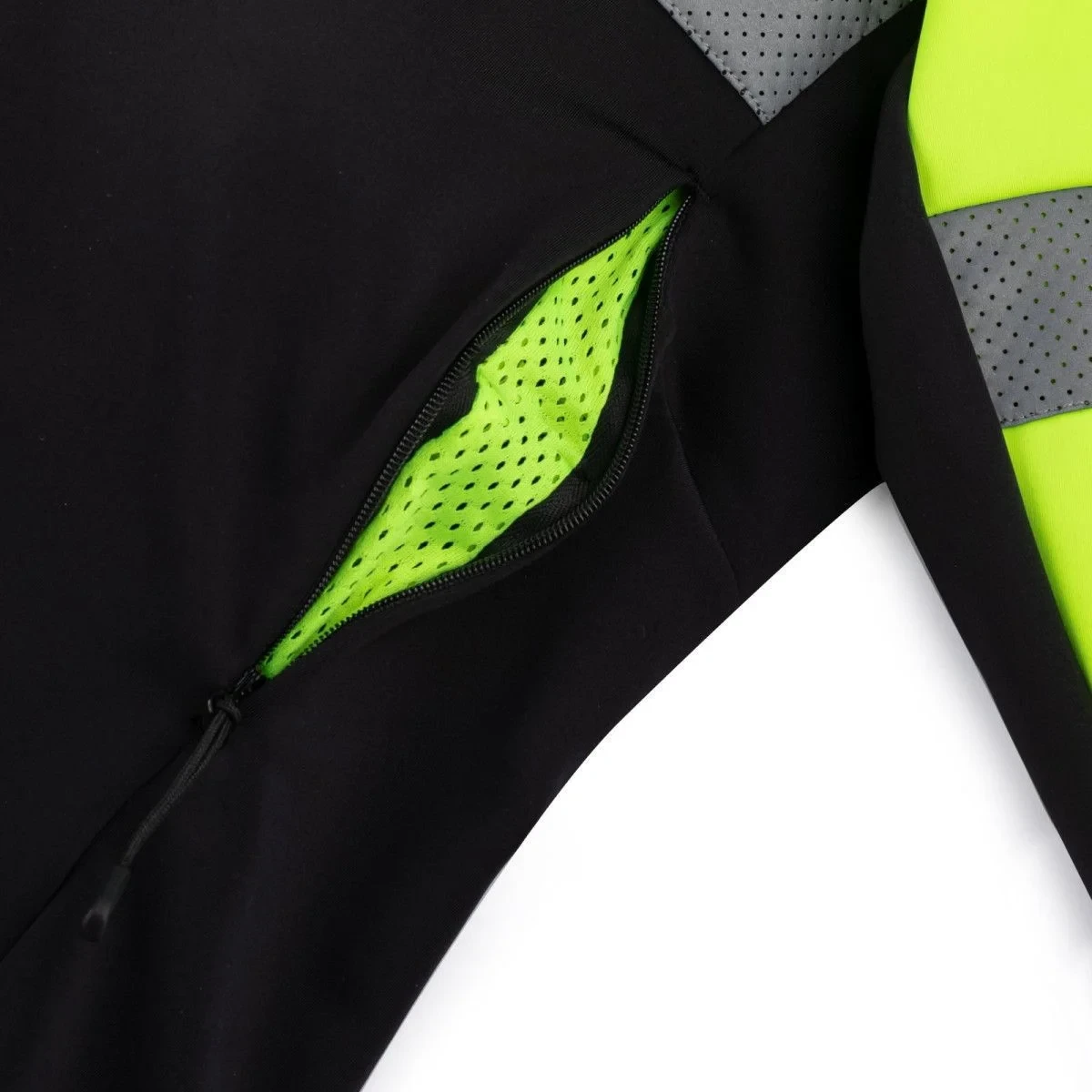 Kilpi NERETO-M je pánská softshellová bunda pro cyklisty, která je díky hřejivému softhellovému materiálu vhodná do chladnějších minusových teplot. Navíc vnitřní všitá vestička ze strukturovaného fleecu poskytuje další izolační vrstvu a pomáhá odvádět vlhkost od těla. Neviditelné ventilační zipy na předním dílu zlepšují prodyšnost při vysokém fyzickém výkonu. Široké lemy rukávů jsou z přiléhavé elastické manžety. Prodloužený zadní díl je zakončen lemem ze silikonovým potiskem a vysoký límec s vnitřní légou je ukončen krytkou zipu. Na zádech jsou umístěny dvě prostorné kapsy s mikroventilačními otvory. Laserem řezané perforované reflexní pruhy na ramenou a efektní lepené švy jsou velmi dobře viditelné ve tmě. Kilpi NERETO-M v dvoubarevné kombinaci černé a neonově žluté barvy bude oblíbeným kouskem všech vášnivých cyklistů.
