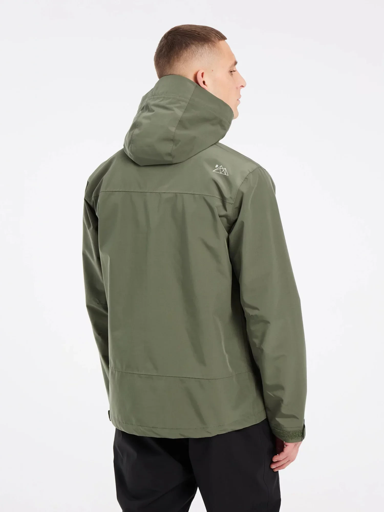 Vysoký límec a pevná kapuce – navržená tak, aby dokonale seděla přes helmu – poskytují dodatečnou ochranu před nepříznivými vlivy počasí.