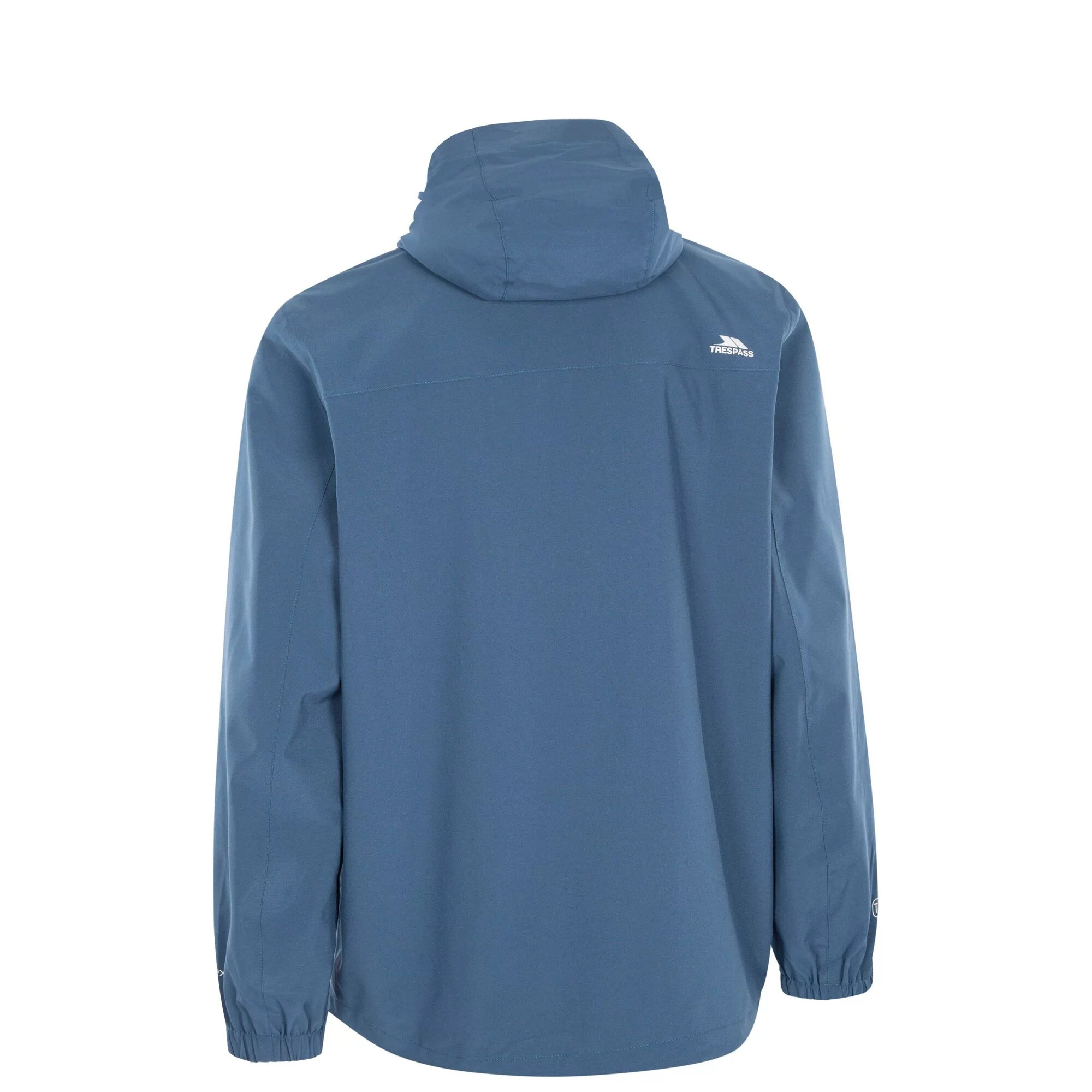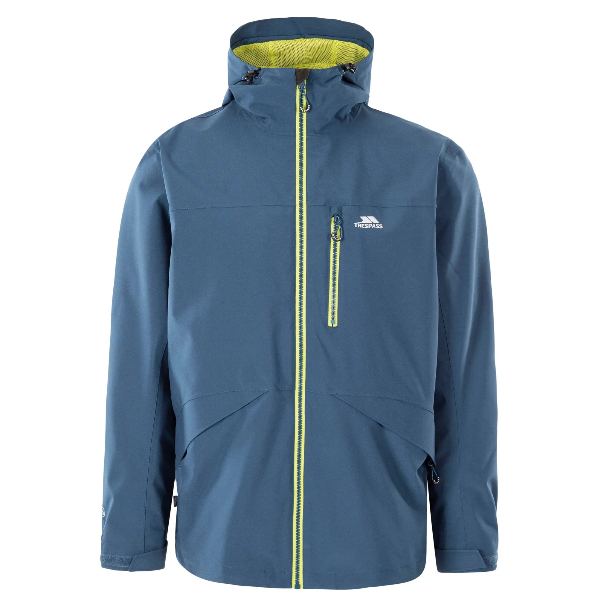 Pánská voděodolná bunda Trespass Hopwas má kapuci a tři kapsy na zip pro bezpečné uložení vašich věcí.