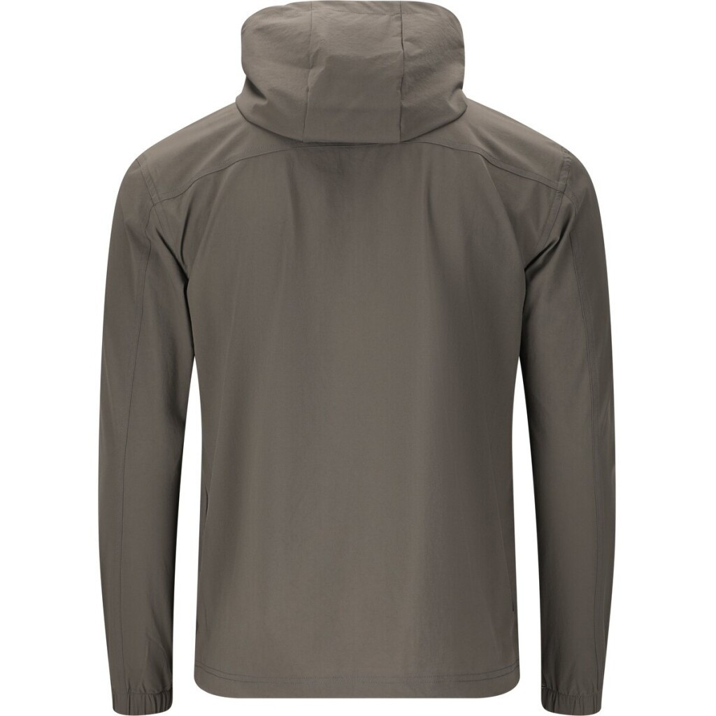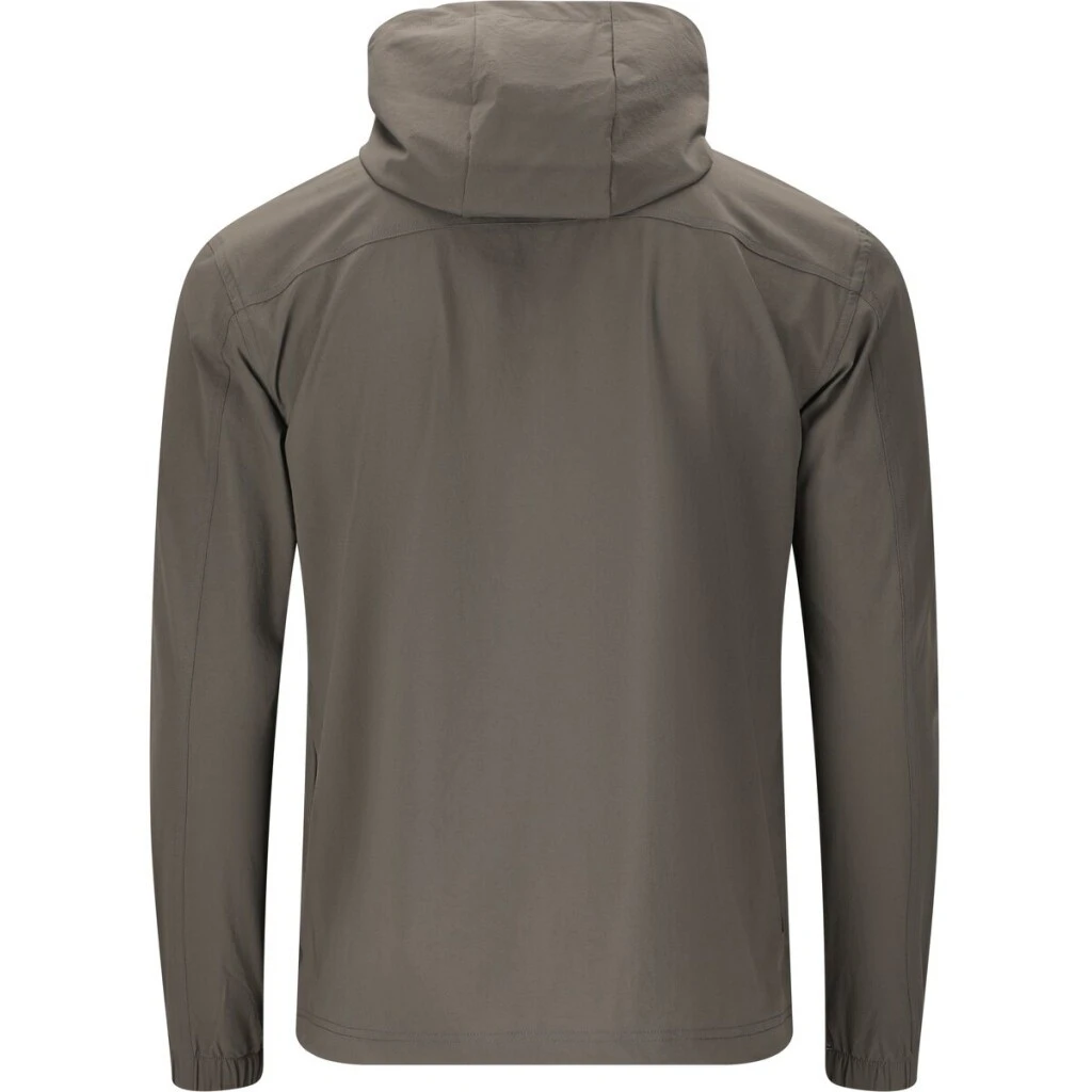 Prodloužený zip u krku umožňuje snadné oblékání a regulaci ventilace, zatímco pevná kapuce chrání v nepříznivém počasí.