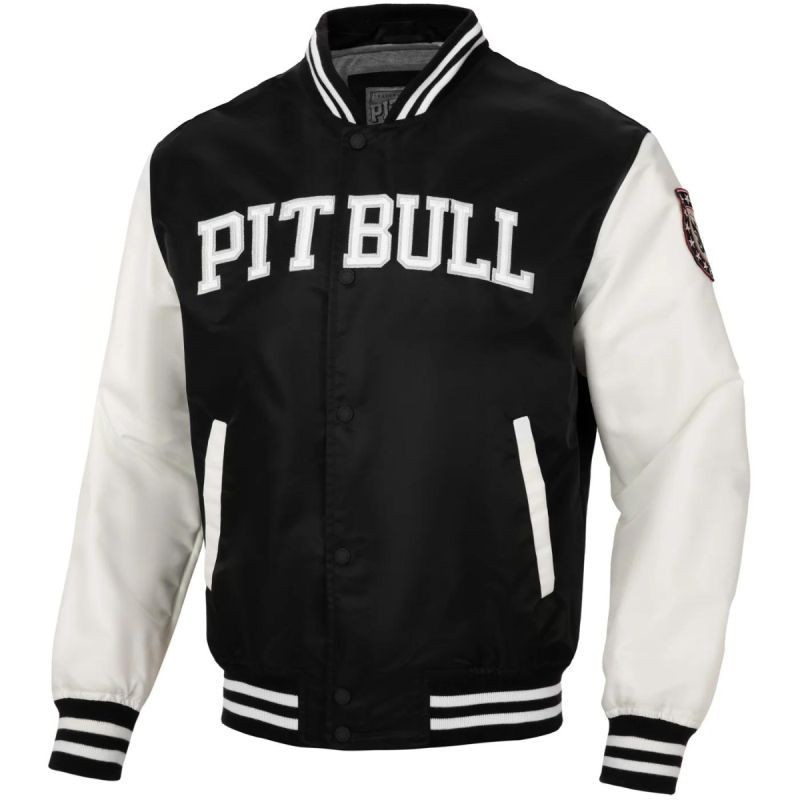 Velký vyšívaný nápis Pit Bull na hrudi, který dodává bundě charakter a styl.