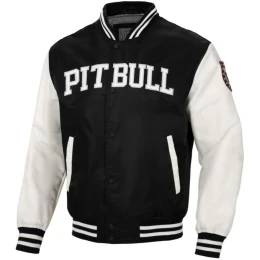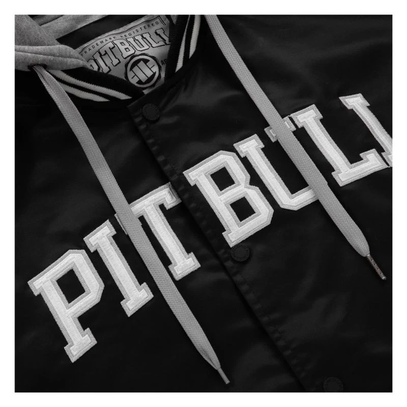 Duży wyszyty napis Pit Bull na klatce piersiowej, dodający charakteru i stylu.