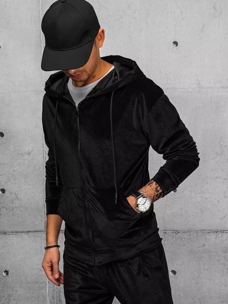 Pánská černá velurová mikina FashionStreet BX5544