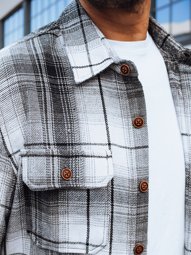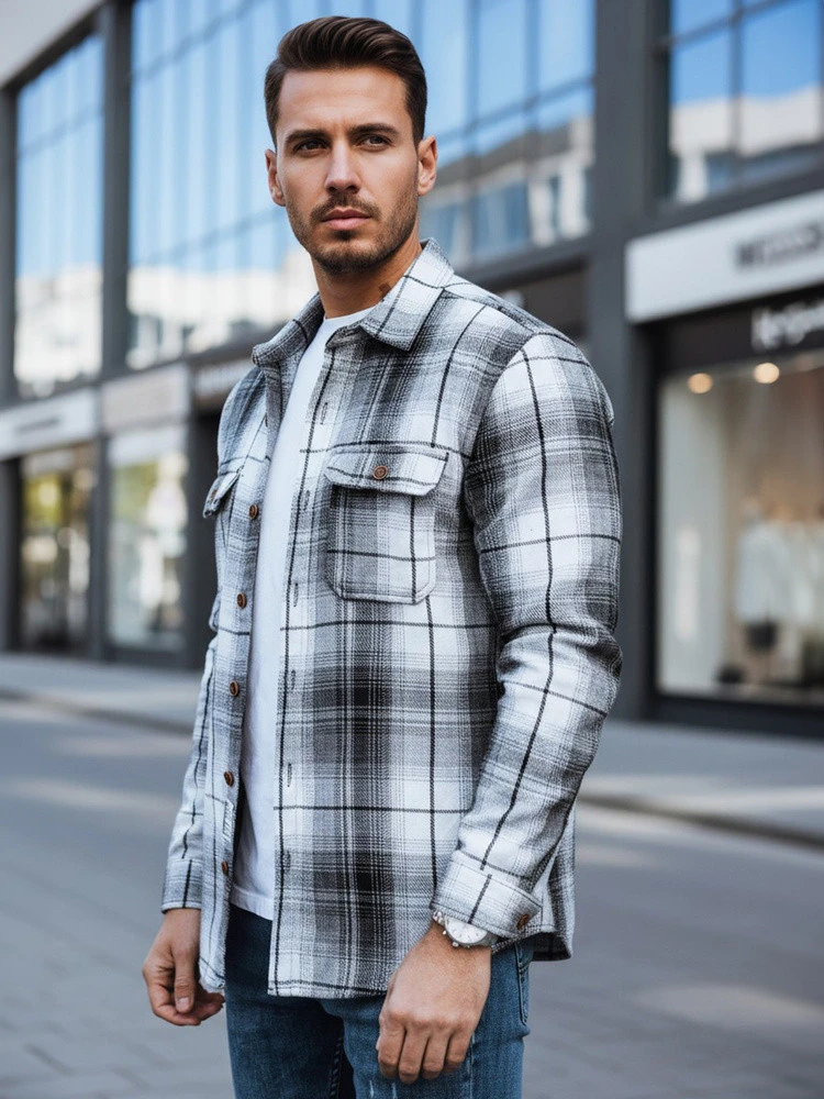 Pánská černobílá kostkovaná flanelová košile FashionStreet DX2677