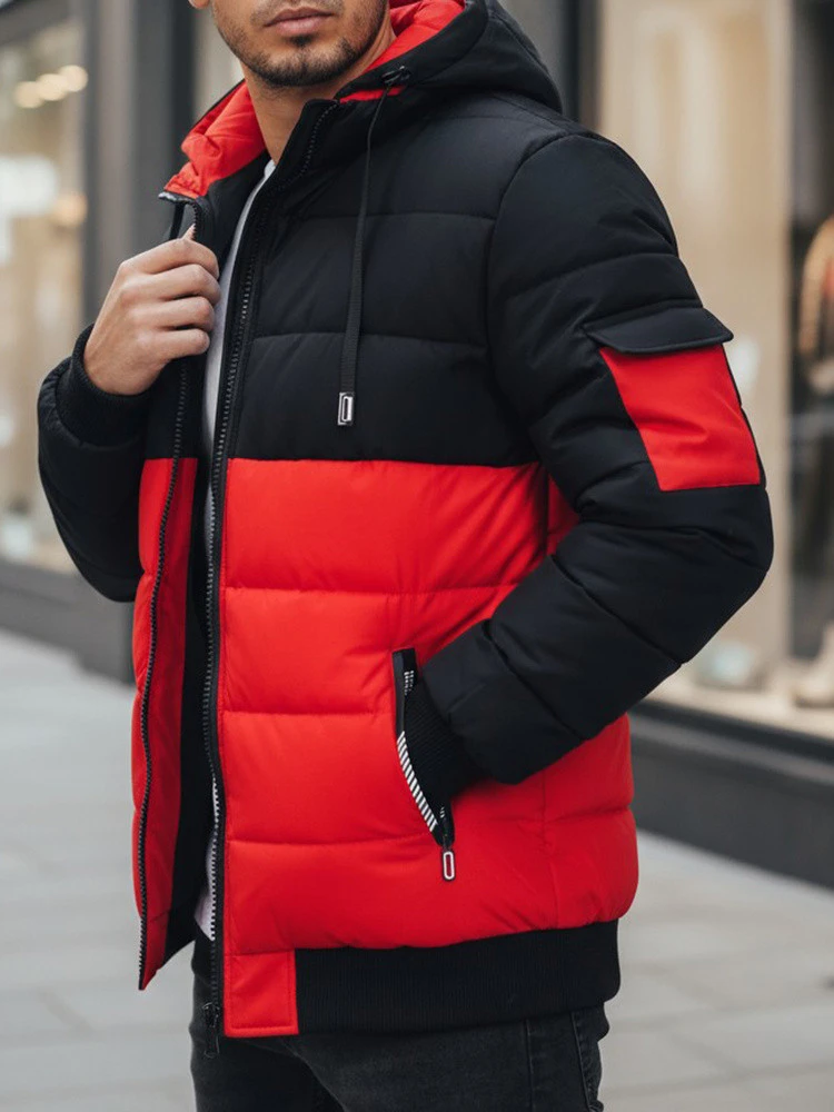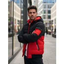 Pánská červeno-černá zimní bunda s kapucí FashionStreet TX5099