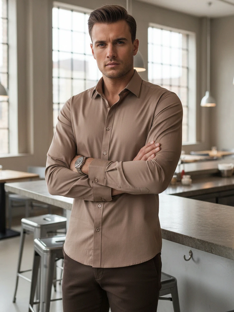 Přidání recenze k Pánská elegantní hladká béžová košile REGULAR FIT FashionStreet DX2686