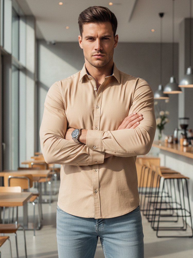 Pánská elegantní hladká béžová košile SLIM FIT FashionStreet DX2602