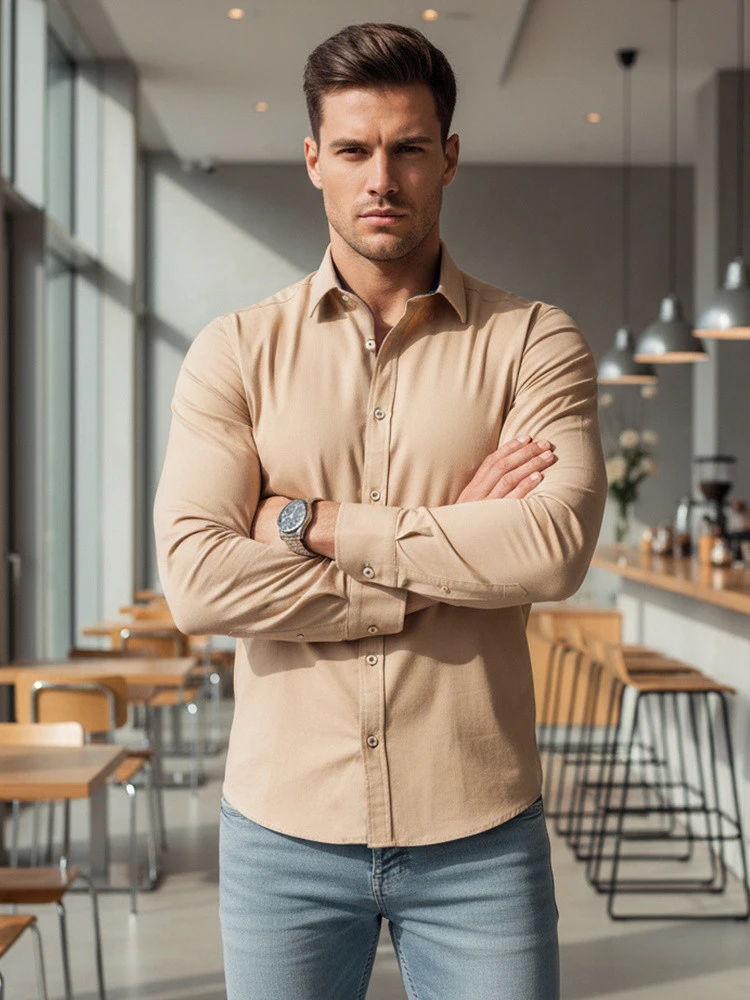 Přidání recenze k Pánská elegantní hladká béžová košile SLIM FIT FashionStreet DX2602