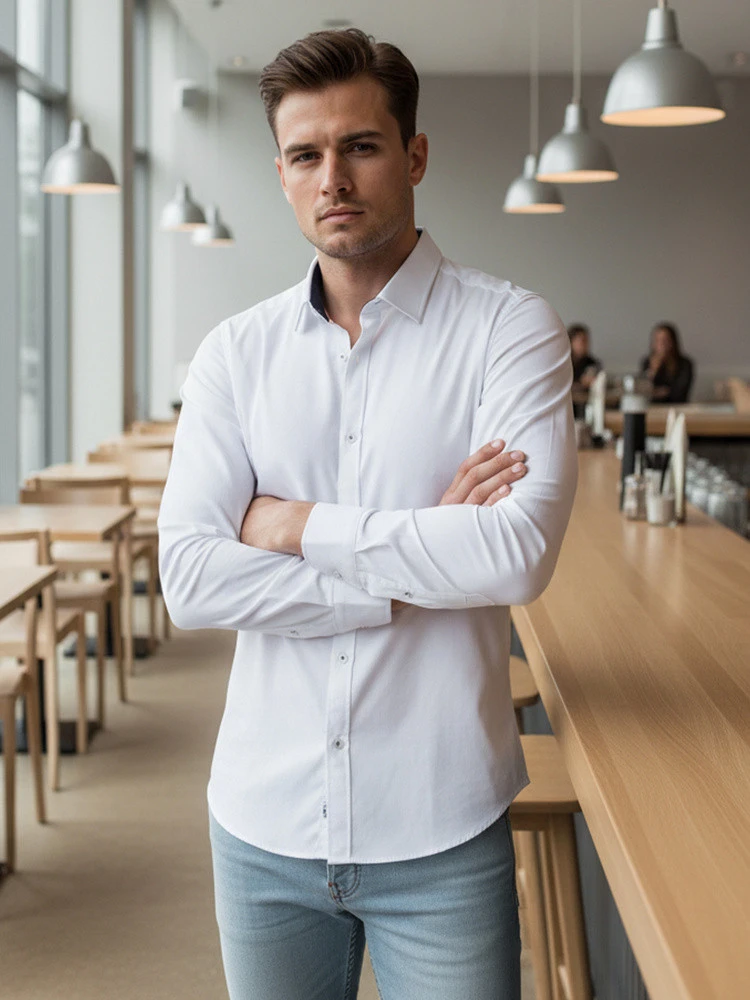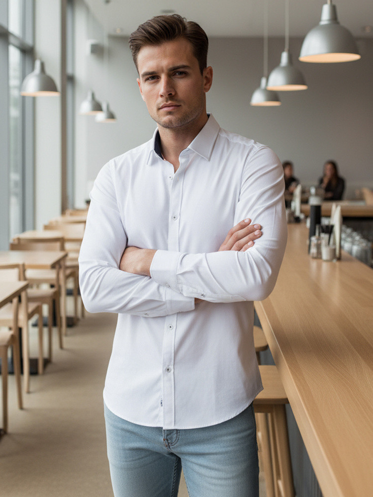 Přidání recenze k Pánská elegantní hladká bílá košile SLIM FIT FashionStreet DX2618