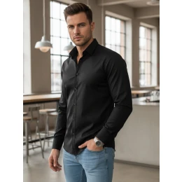 Pánská elegantní hladká černá košile REGULAR FIT FashionStreet DX2538
